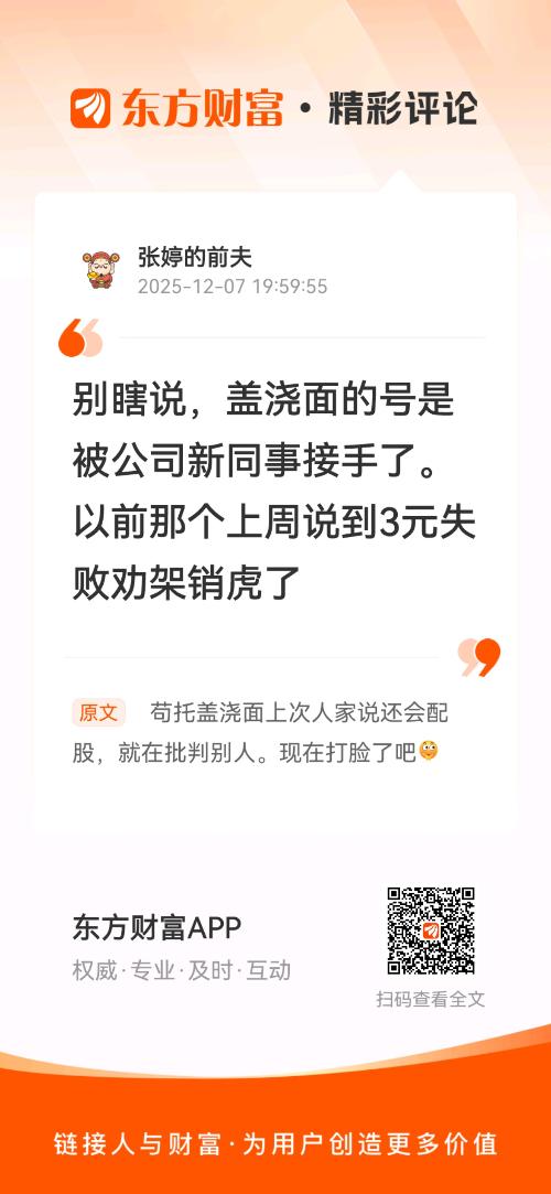 温馨提示: 1.根据《证券法》规定,禁止编造、传播虚假信息或者误导性信息,扰乱证券市场;2.用户在本社区发表的所有资料、言论等仅代表个人观点,与本网站立场无关,不对您构成任何投资建议。用户应基于自己的独立判断,自行决定证券投资并承担相应风险。《东方财富社区管理规定》