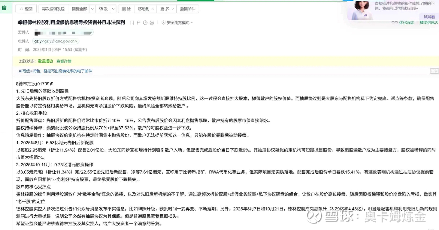 $德林控股(HK|01709)$ 只要举报多了,最后就算清算,董事长也会进去的