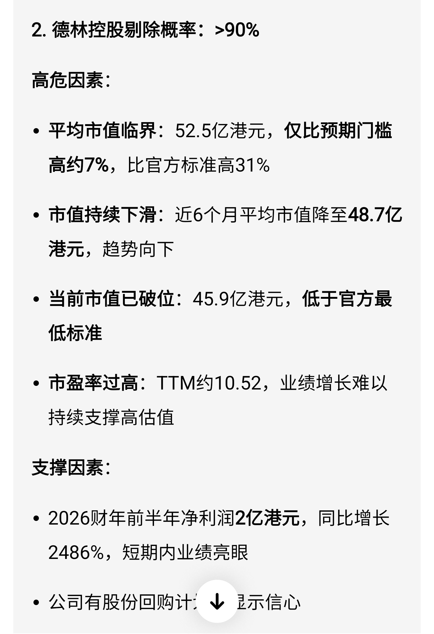 $德林控股(HK|01709)$ 剔除港股通概率90%以上啊