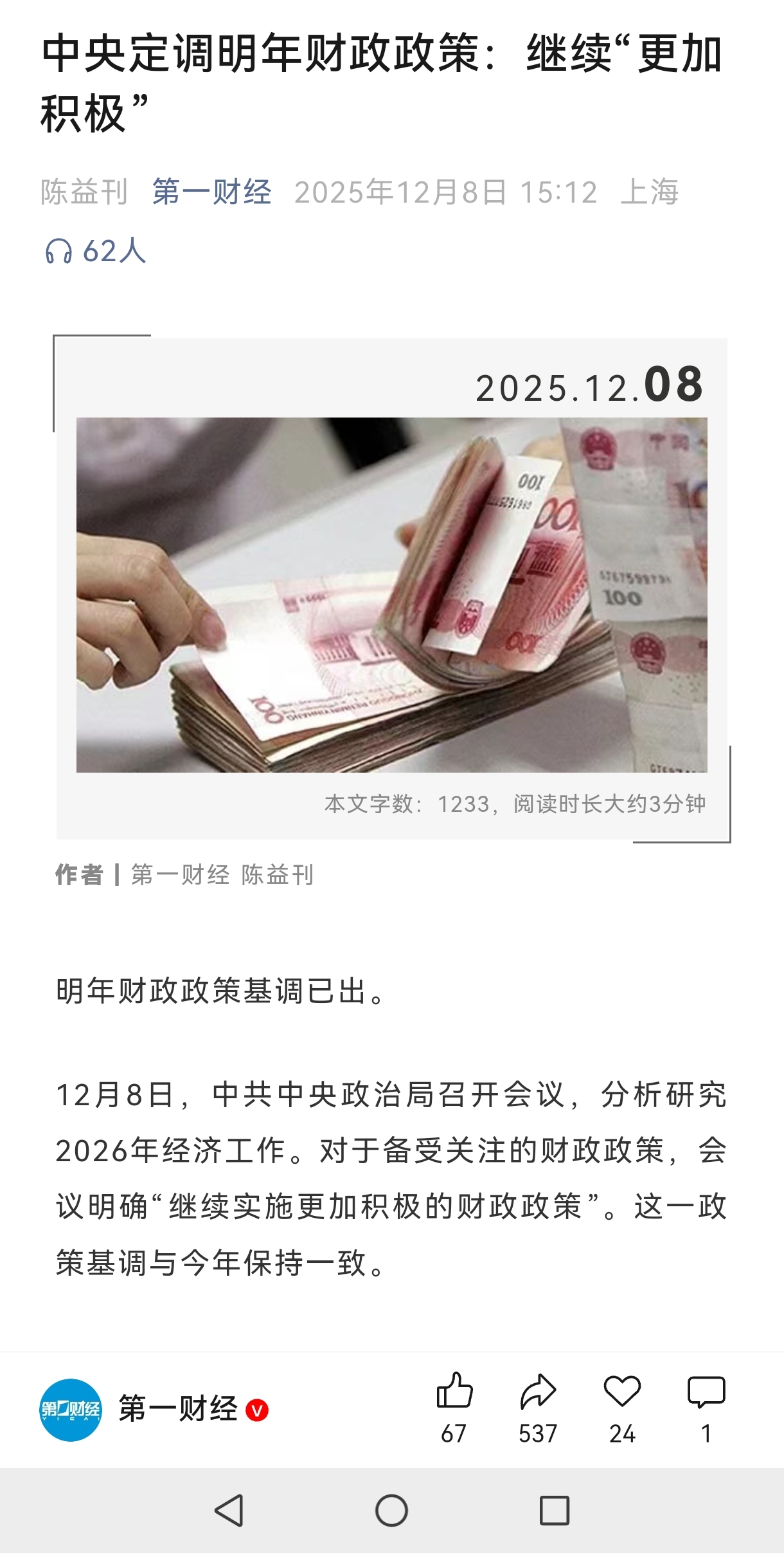 中央定调明年财政政策:继续“更加积极”