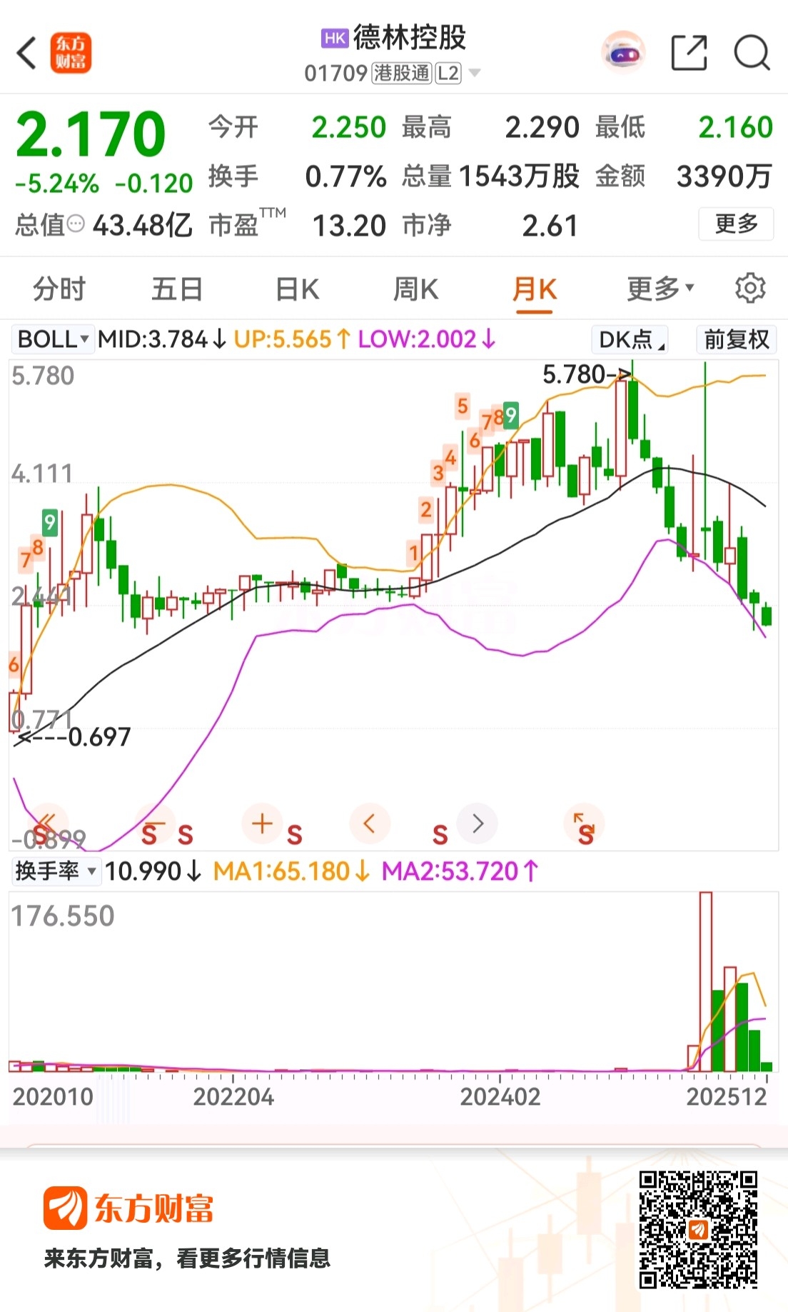 $德林控股(HK|01709)$ 这附近是5年的大底,我不太相信这里会被彻底打穿再下台阶,尽管黑仔们风狂助攻。