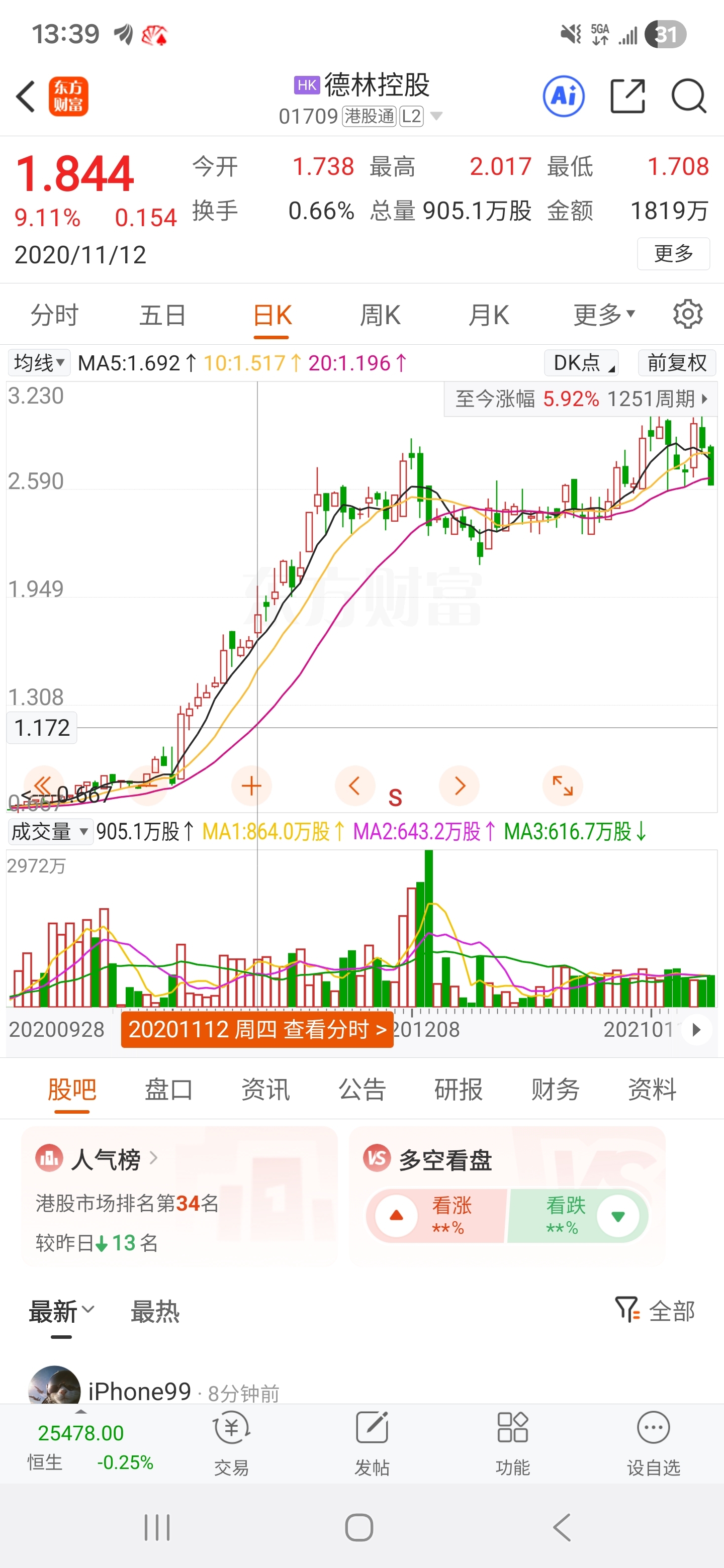 $德林控股(HK|01709)$ 股价已经干到5年前借壳上市左右了
