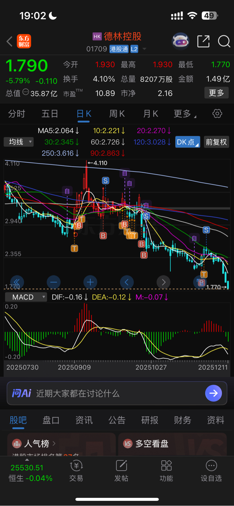 $德林控股(HK|01709)$ 这个老千股,总体不亏,还赚点,但是就是觉得恶心