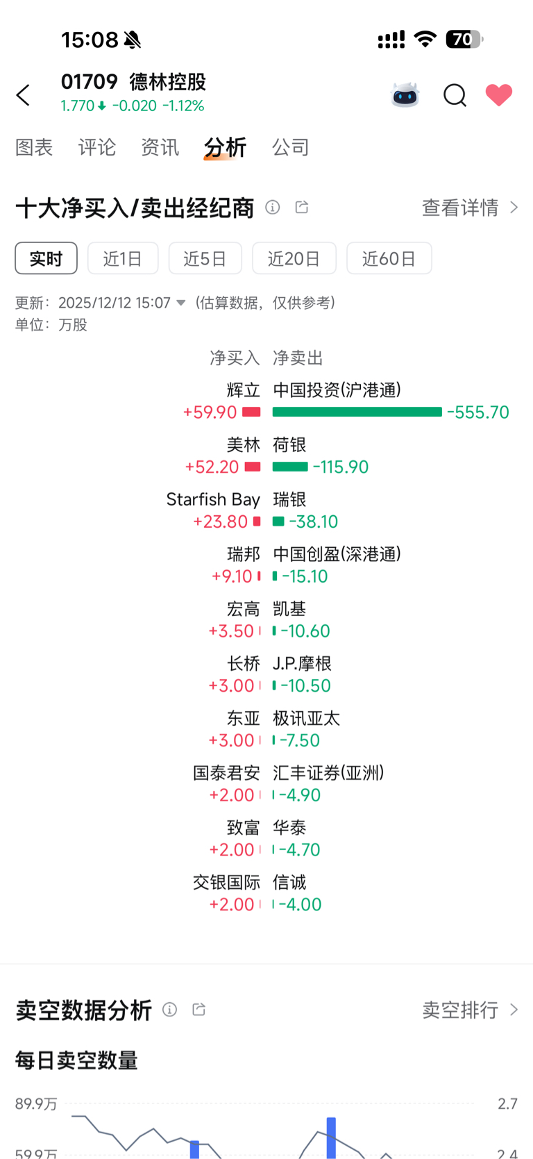 $德林控股(HK|01709)$ 把剩下的600万股拉上去2块,保住港股通啊!退通了以后还怎么配股?融资?