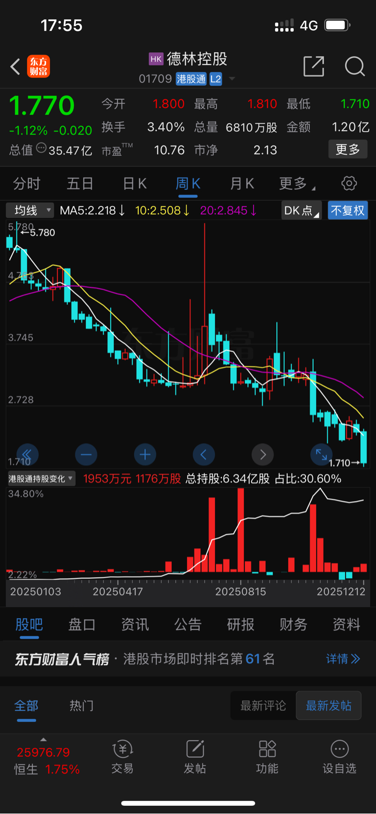 $德林控股(HK|01709)$ 全年跌幅70%,真特么坑人