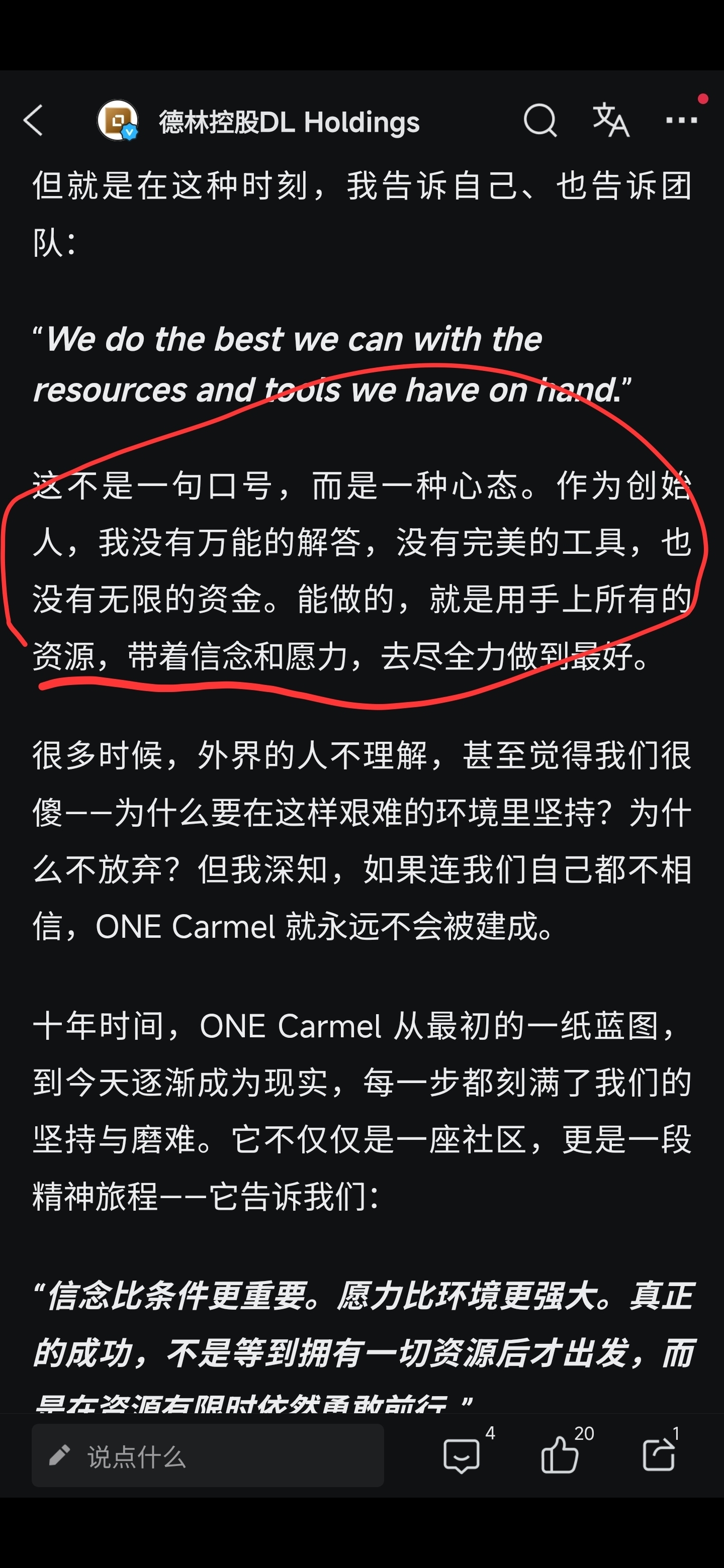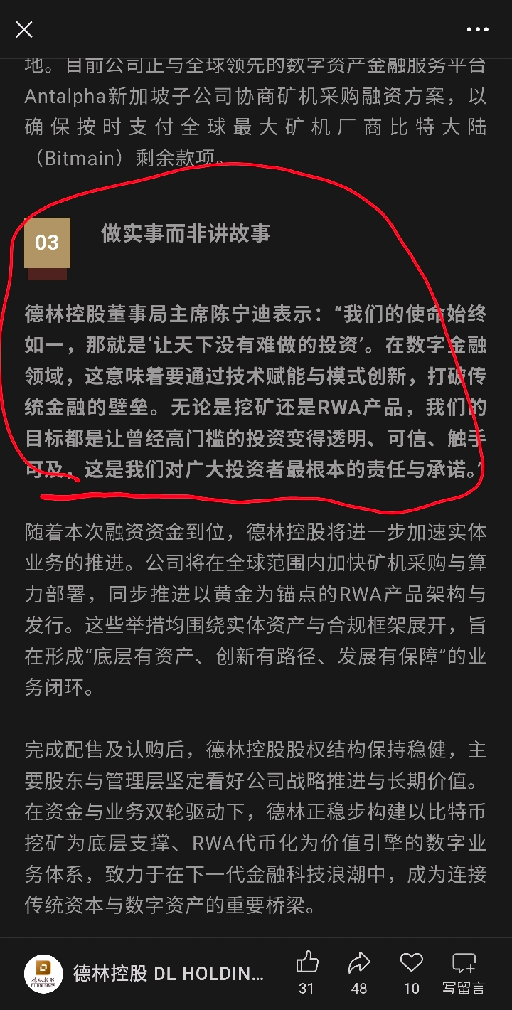 $德林控股(HK|01709)$ 没配股前几乎天天发小作文,述说他的板业雄图,配股成功了(套走16亿)。股价缺腰斩再腰斩,他(陈宁迪)吹的牛有一个实现的嘛?现在p也不放一个,你们说怎么让人再次相信他,了???