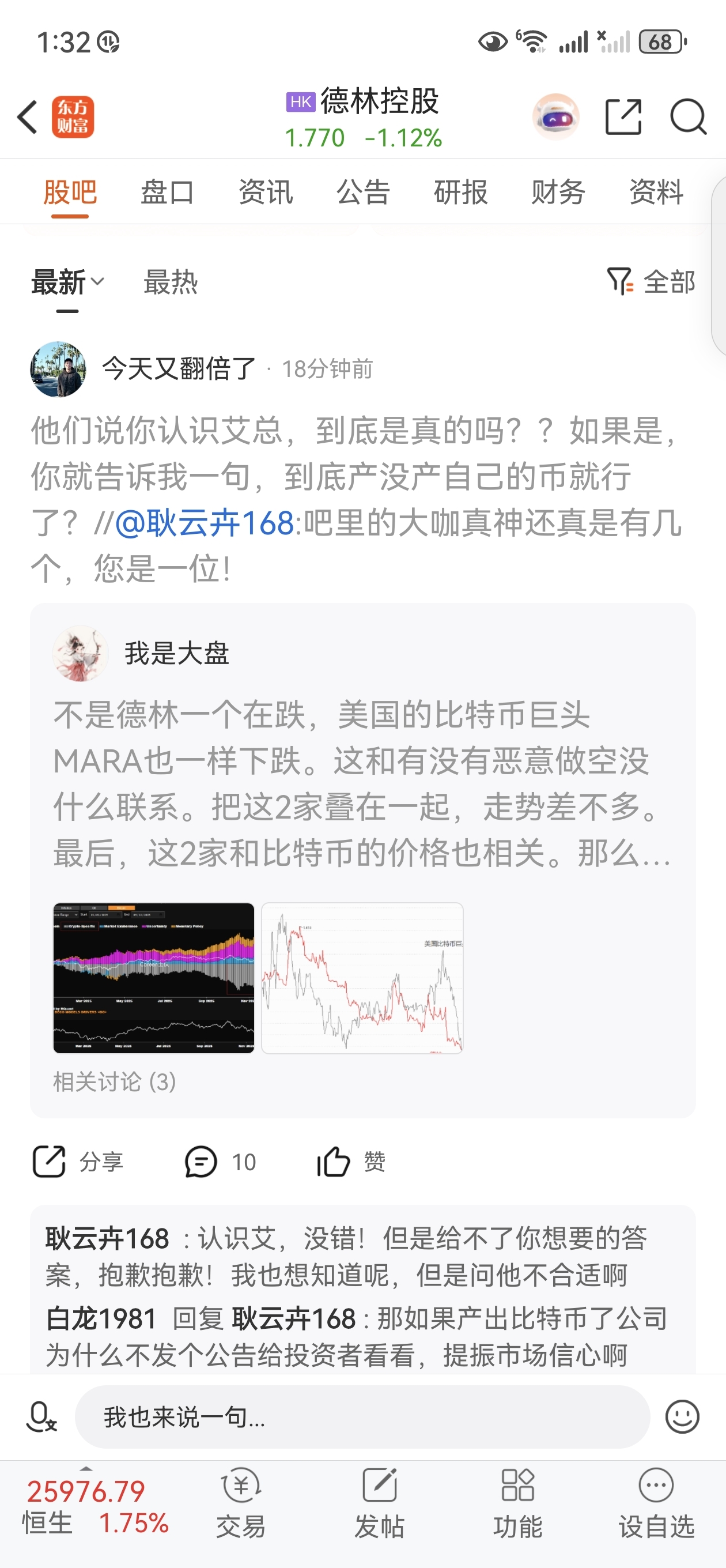 $德林控股(HK|01709)$ 你们唱多也好唱空也好,公司员工也好,如果你们能支持公司买点公司股票,晒一下我就相信你真的支持公司发展,哈哈哈不用拍马屁老板也喜欢你~