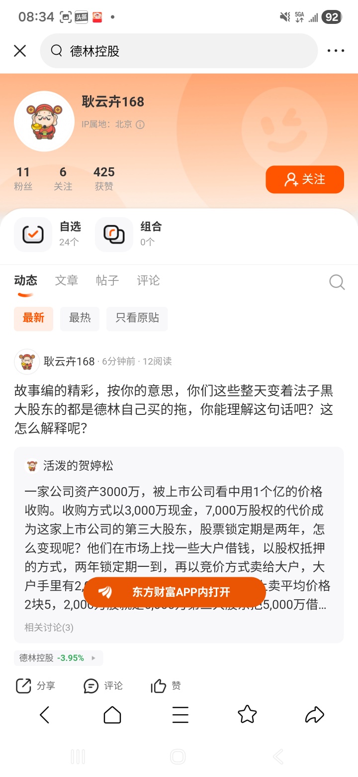 以前有人说德林不好的,我也来气,因为股价天天跌,谁不生气。我就是被多方骗进来的,天天牌照牌照的,不过也不能全怨那些多方,要怪就怪自己吧。前段时间多方很多人喊德林好,股价涨了吗?没有。有人看到了多方的评论就会来抄底。还有人在其他股吧里拉人,股价涨了吗?也没有。这样做只会帮助了主力。不想骂公司的,你也别说公司好就行,没有人来抄底,没有人接盘,股价自然就涨了。