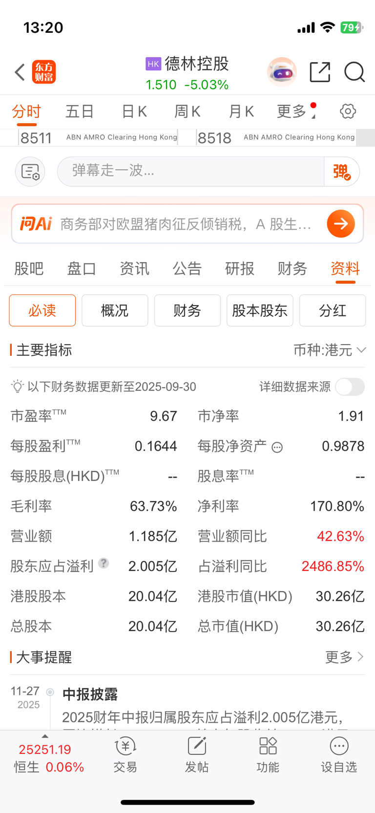 $德林控股(HK|01709)$ 现在市值还有30亿,最多值10亿,也就是0.5左右才是这货的价值