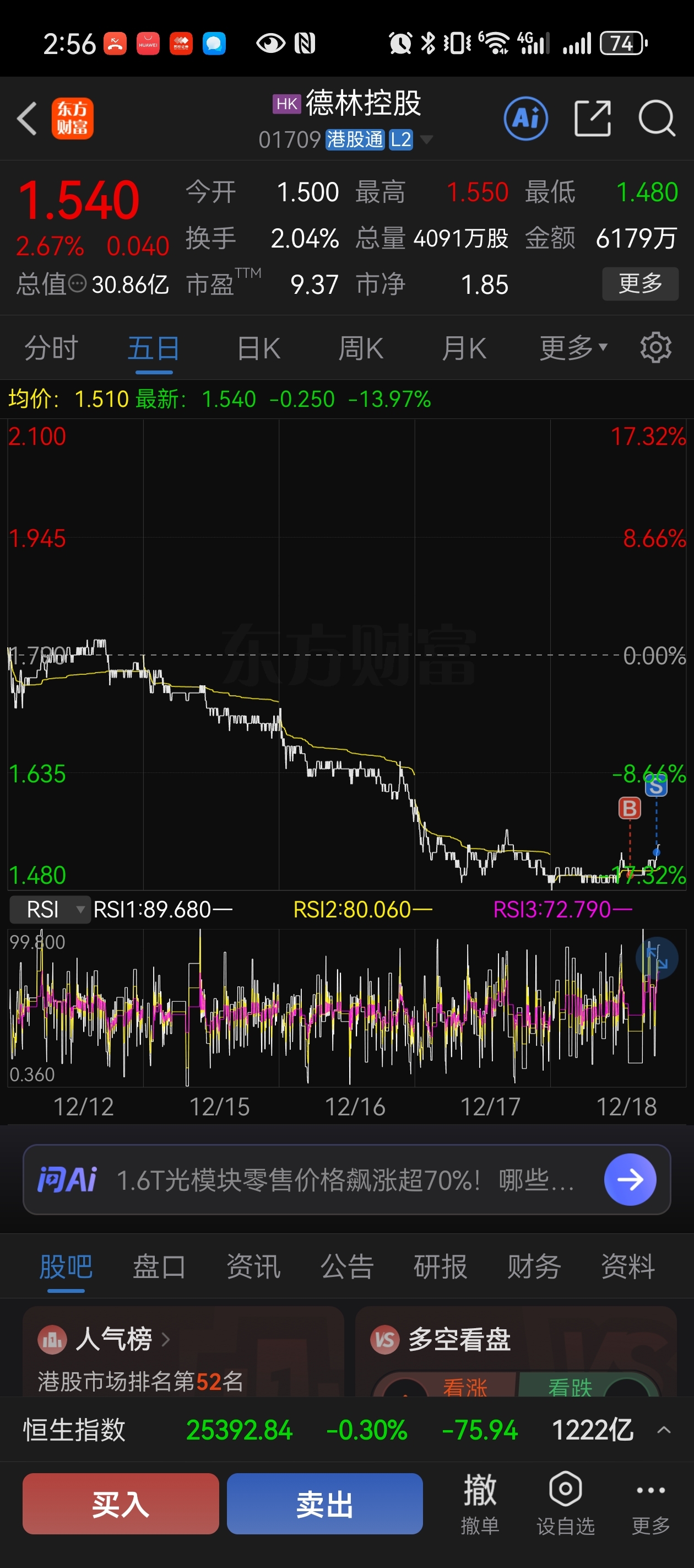 $德林控股(HK|01709)$ 12月3号割了一块大肉,一直没敢进,今天尝试一下