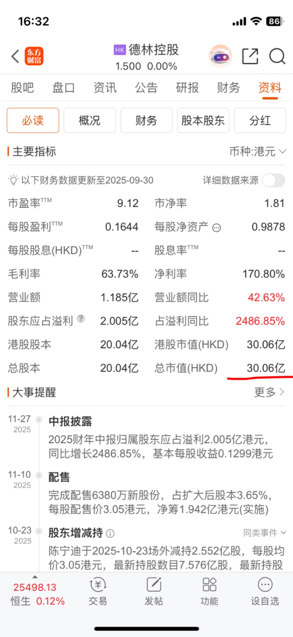 $德林控股(HK|01709)$ 这个老千能值30亿市值吗?最多10亿市值吧!