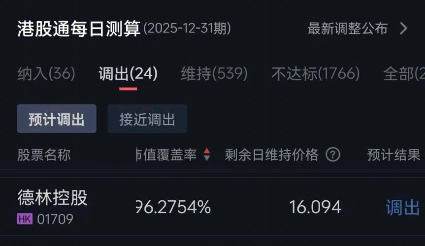 友情提示警戒,保港股通的资格,今天已经提高到了60亿市值以上,必须是平均每日的要求,德林,前面被挖的坑实在太多了,除非 德林 的股价必须上16元,是16元,看清楚哦。并且每天保持到12月月底,已经回天乏术了,2026年3月肯定会被踢出港股通。2月下旬就等港交所的通知吧,其实10月中下旬就要警戒了,可惜啊,很多小白不知道这个规则,现在已经救不了了。所以这2个月 姓陈的 搞所谓的回购也好,配售也罢,变相的高抛低吸,把南向资金投资者玩弄于股掌之间。唉