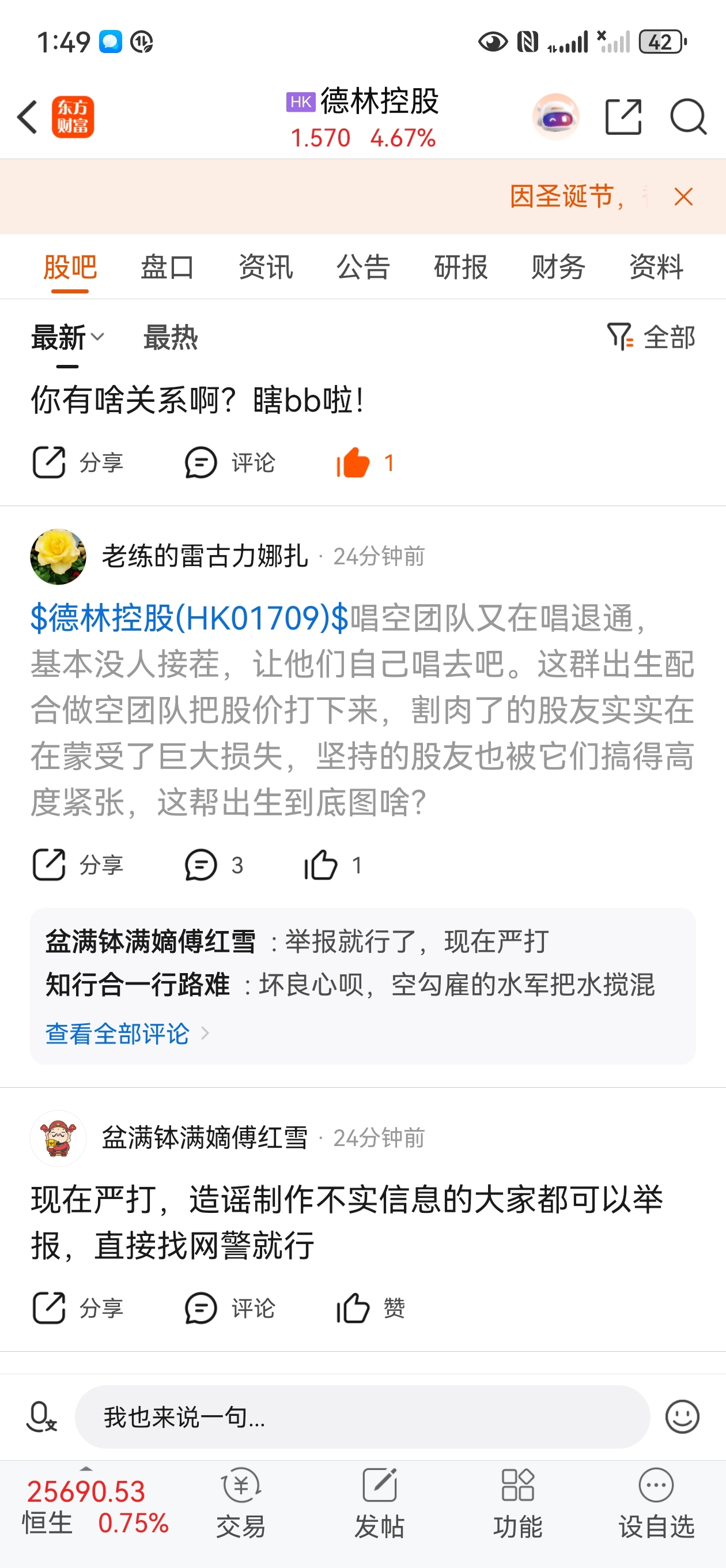 $德林控股(HK|01709)$ 锁舱的朋友建议把那些无脑空的啦拉黑,里面大多数人都亏几十个点,他们一门心思劝你跑~请问大家钱都是大风刮来的?