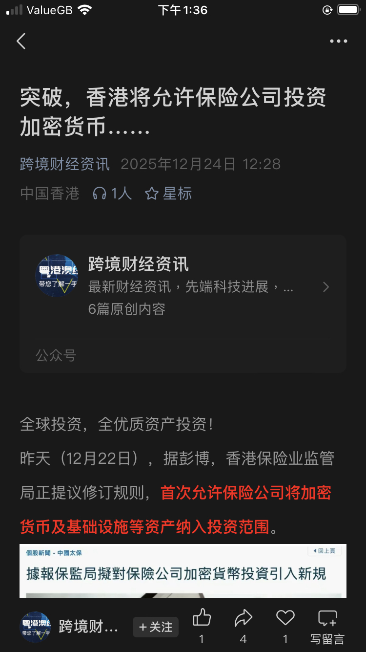 香港全力拥抱加密货币,首次允许保险公司将加密货币及基础设施纳入投资范围,那大饼和