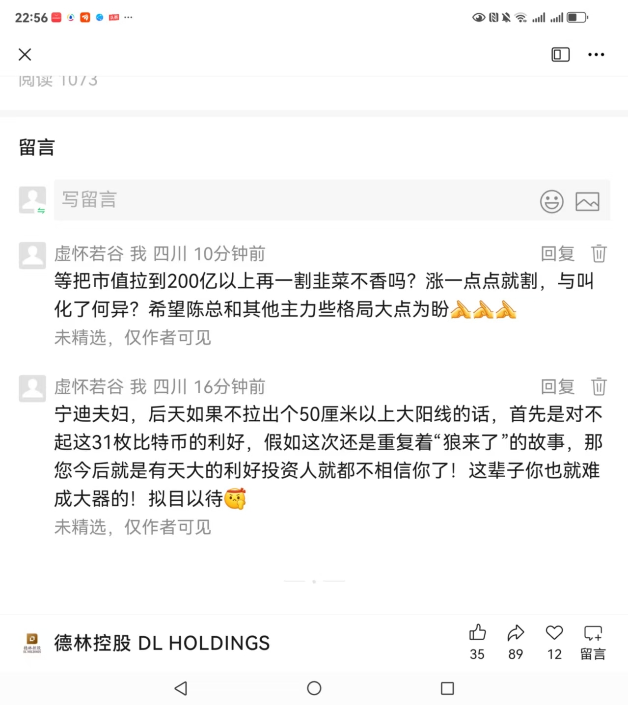 温馨提示: 1.根据《证券法》规定,禁止编造、传播虚假信息或者误导性信息,扰乱证券市场;2.用户在本社区发表的所有资料、言论等仅代表个人观点,与本网站立场无关,不对您构成任何投资建议。用户应基于自己的独立判断,自行决定证券投资并承担相应风险。《东方财富社区管理规定》
