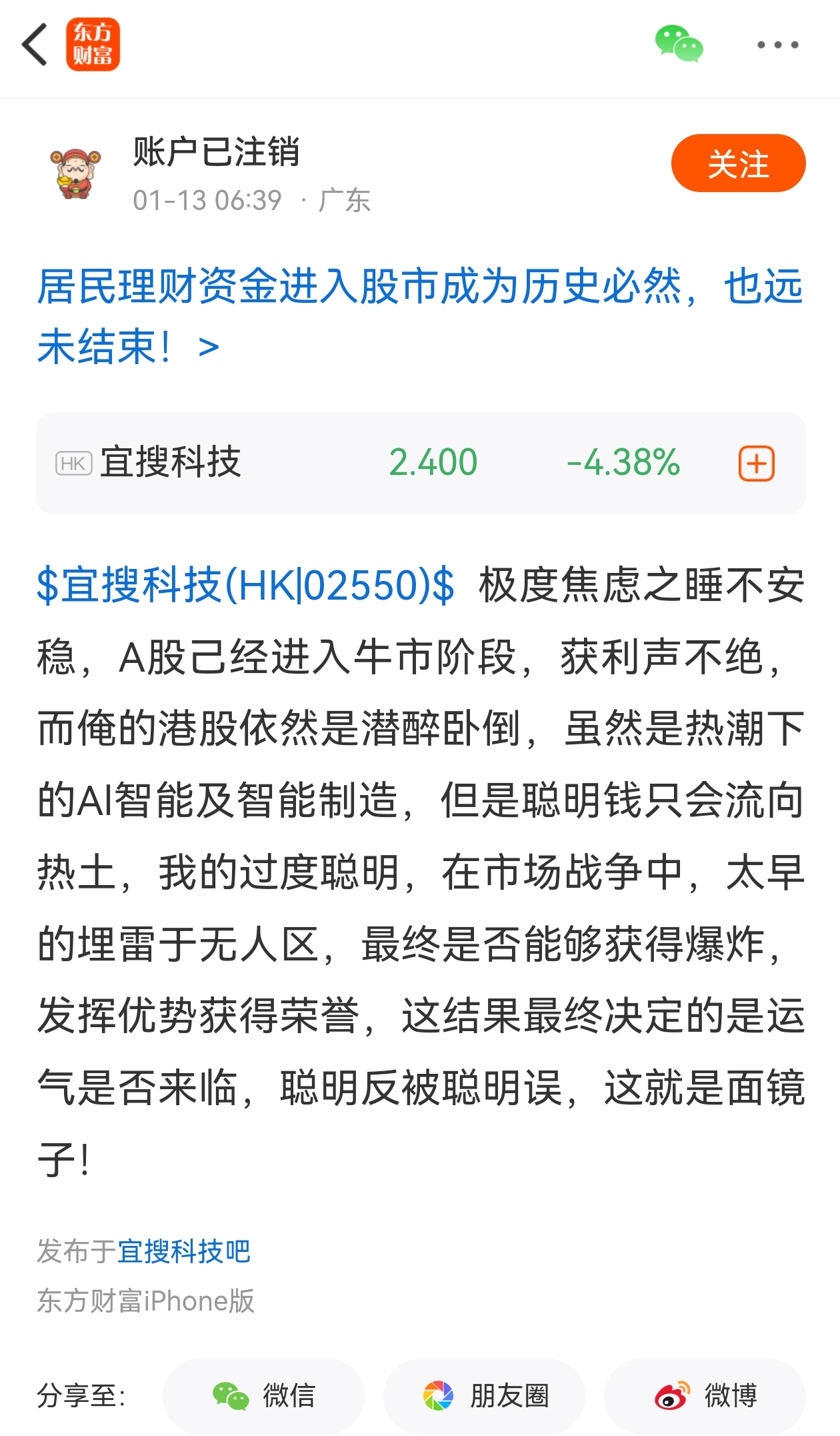 郑重声明:用户在财富号/股吧/博客等社区发表的所有信息(包括但不限于文字、视频、音频、数据及图表)仅代表个人观点,与本网站立场无关,不对您构成任何投资建议,据此操作风险自担。请勿相信代客理财、免费荐股和炒股培训等宣传内容,远离非法证券活动。请勿添加发言用户的手机号码、公众号、微博、微信及QQ等信息,谨防上当受骗!