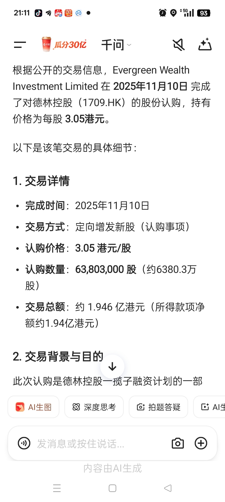 $德林控股(HK|01709)$ 大家来说说美国这家公司入股德林的金额是真买还是假买(过桥)?希望懂金额暗史的人士解释一下