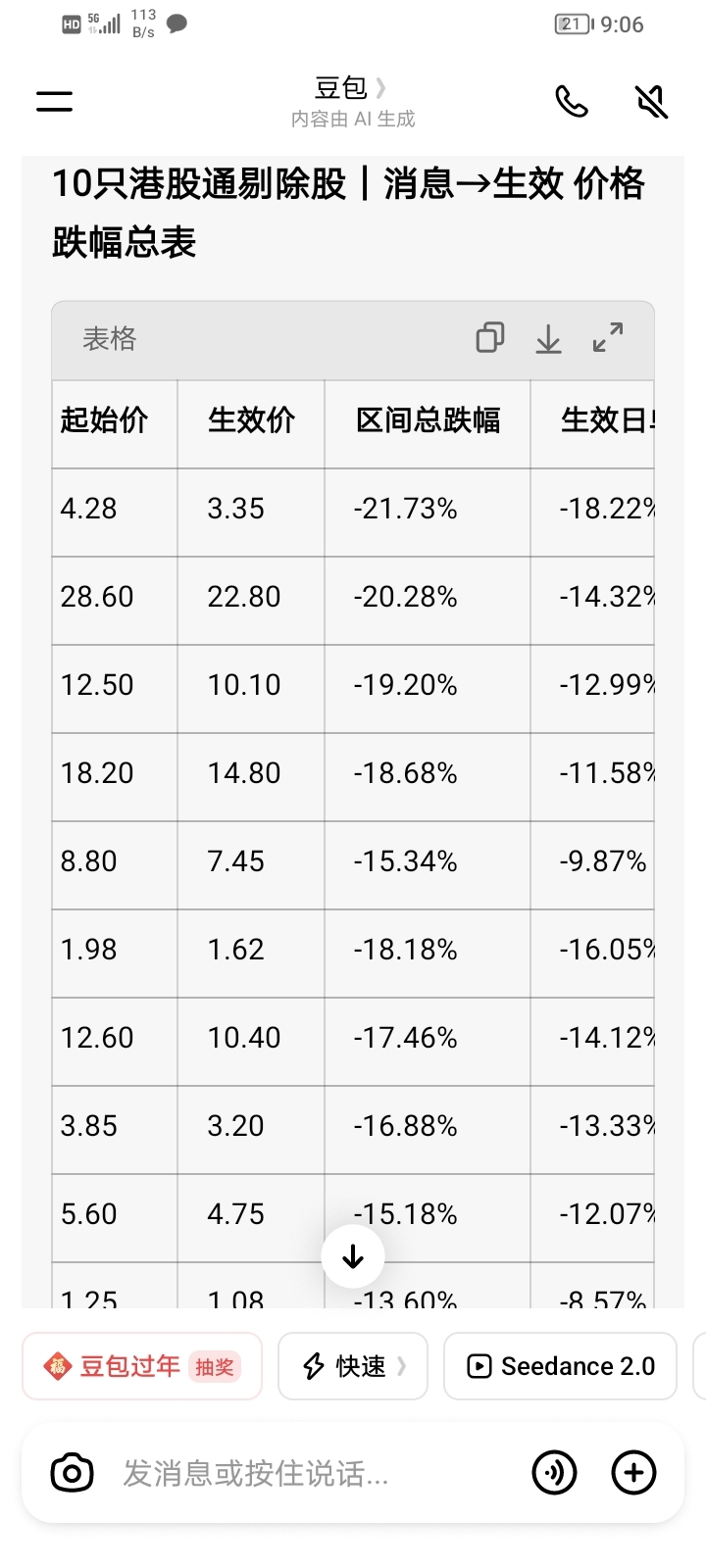 $德林控股(HK|01709)$ 退通不是退市,考虑问题要全面,基本所有退通股的特性是,先跌二三天后企稳反弹,注意不是反转,然后涨跌互现,生效日前三天小幅阴跌大概总计跌五个点,生效日当天绝对跌十个点左右,别被个别人悲观情绪影响,如操作好的话还能吃大肉,自己可以查以前退通股到生效日涨跌时间和价格
