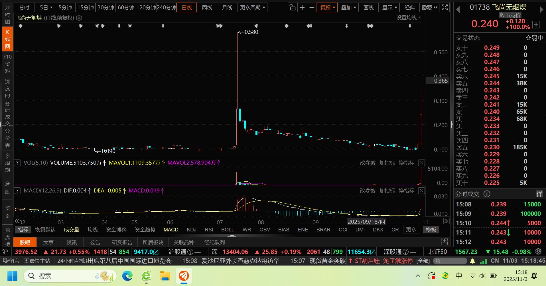 港股老千之$飞尚无烟煤(01738)$ 今日+100%,3个亿的盘子,1200万资金,自娱自乐玩得飞起啊,很爽是不是?