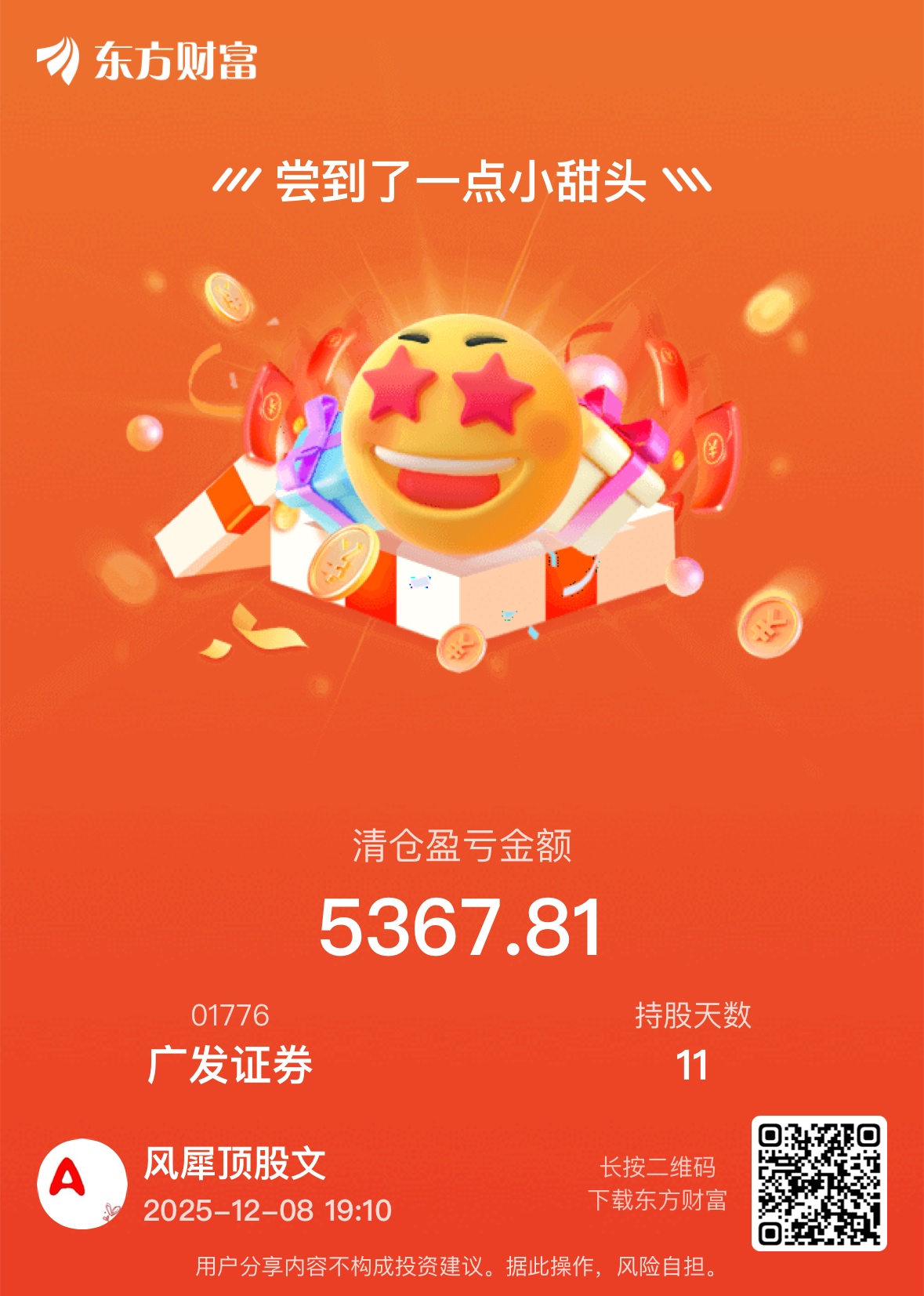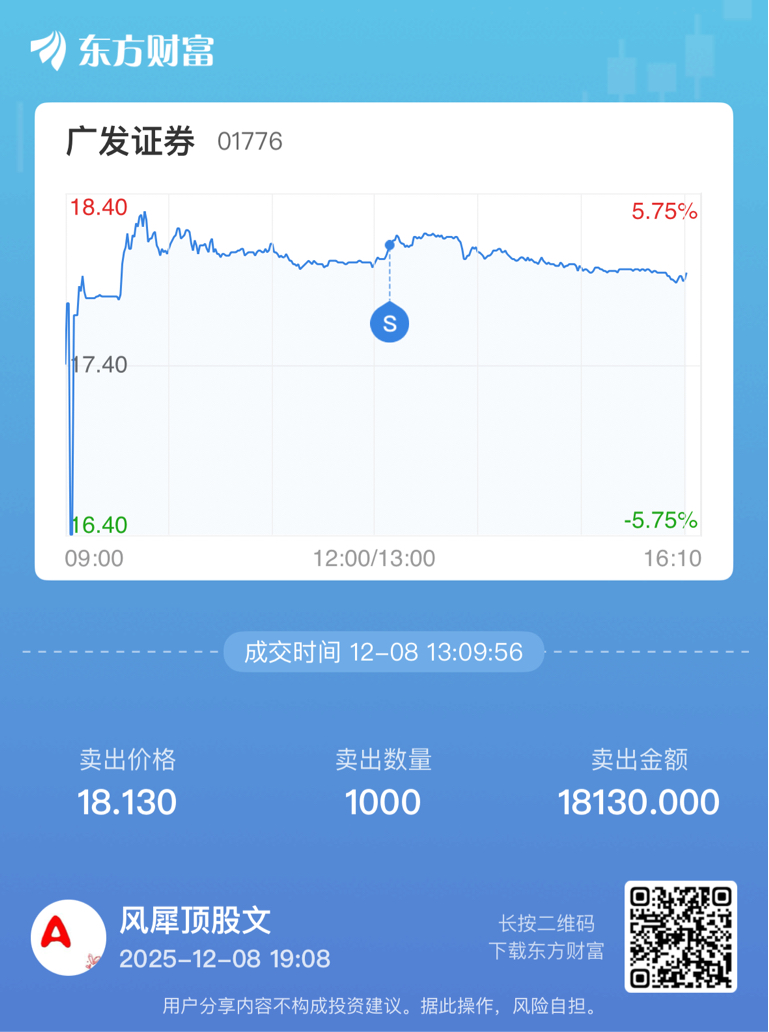 $广发证券(HK|01776)$ 今天卖了广发。祝留下的发财!