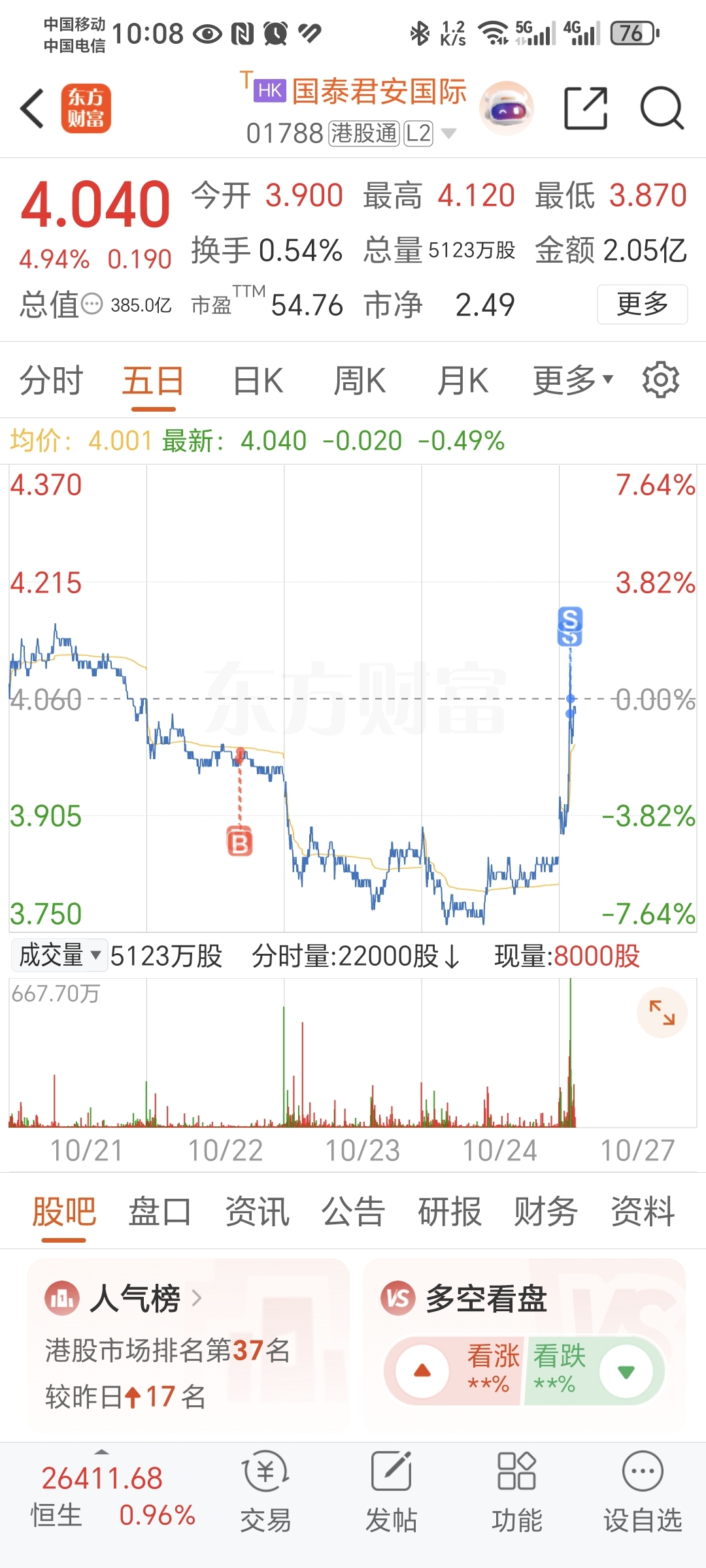 $国泰君安国际(HK|01788)$ 谢谢国泰给口饭吃,感恩。
