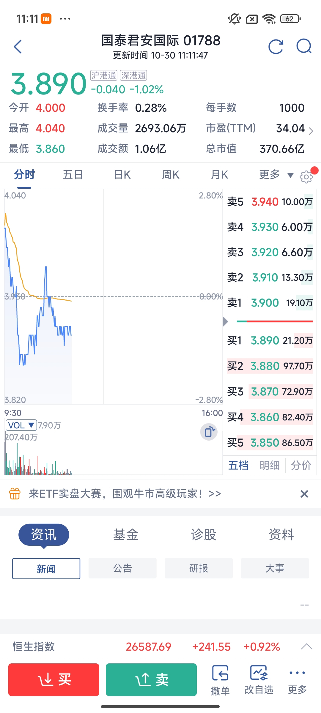 $国泰君安国际(HK|01788)$ 奇怪了,我这边市盈变少了