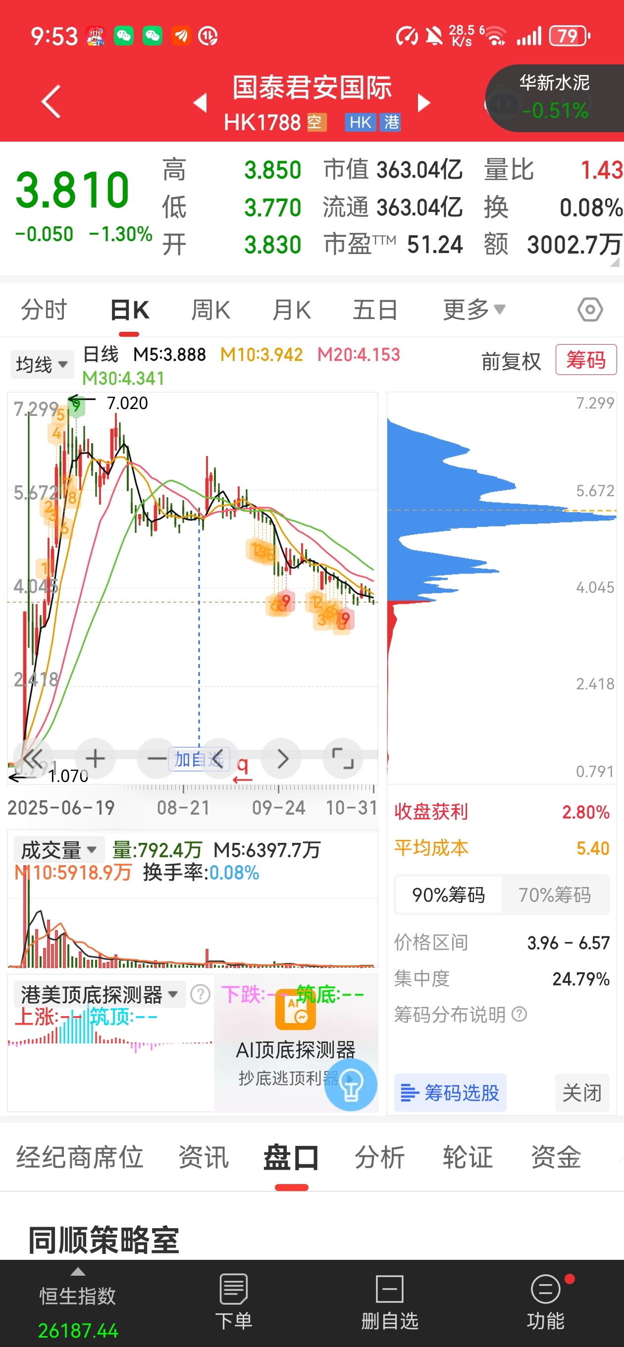 $国泰君安国际(HK|01788)$ 筹码集中得,大家都是亏的