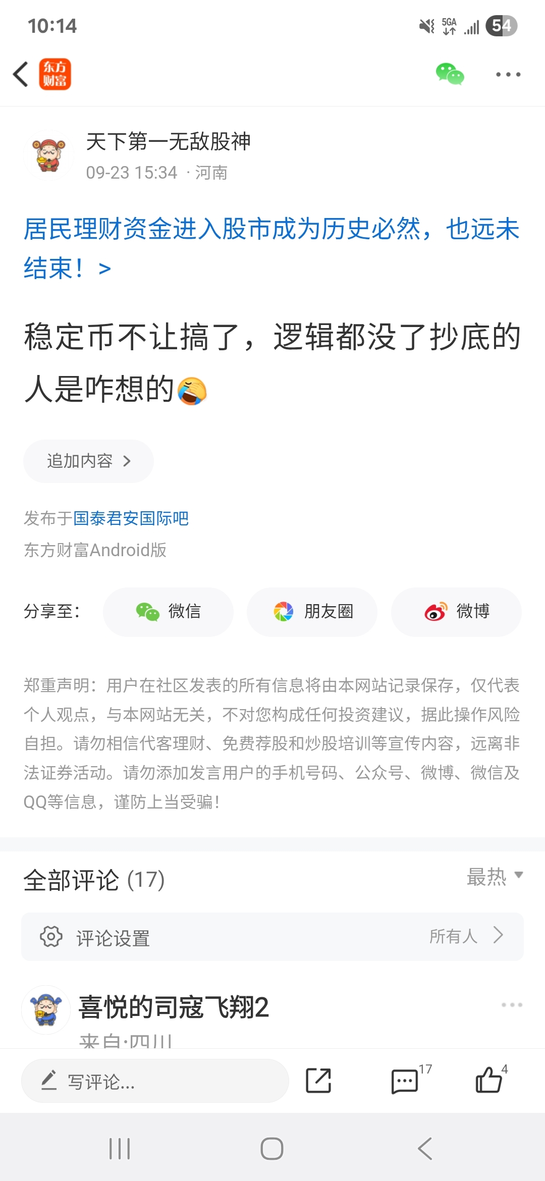 温馨提示: 1.根据《证券法》规定,禁止编造、传播虚假信息或者误导性信息,扰乱证券市场;2.用户在本社区发表的所有资料、言论等仅代表个人观点,与本网站立场无关,不对您构成任何投资建议。用户应基于自己的独立判断,自行决定证券投资并承担相应风险。《东方财富社区管理规定》