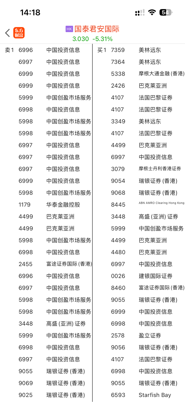 $国泰君安国际(HK|01788)$ 真牛 早上 内资买 外资卖,现在反过来了