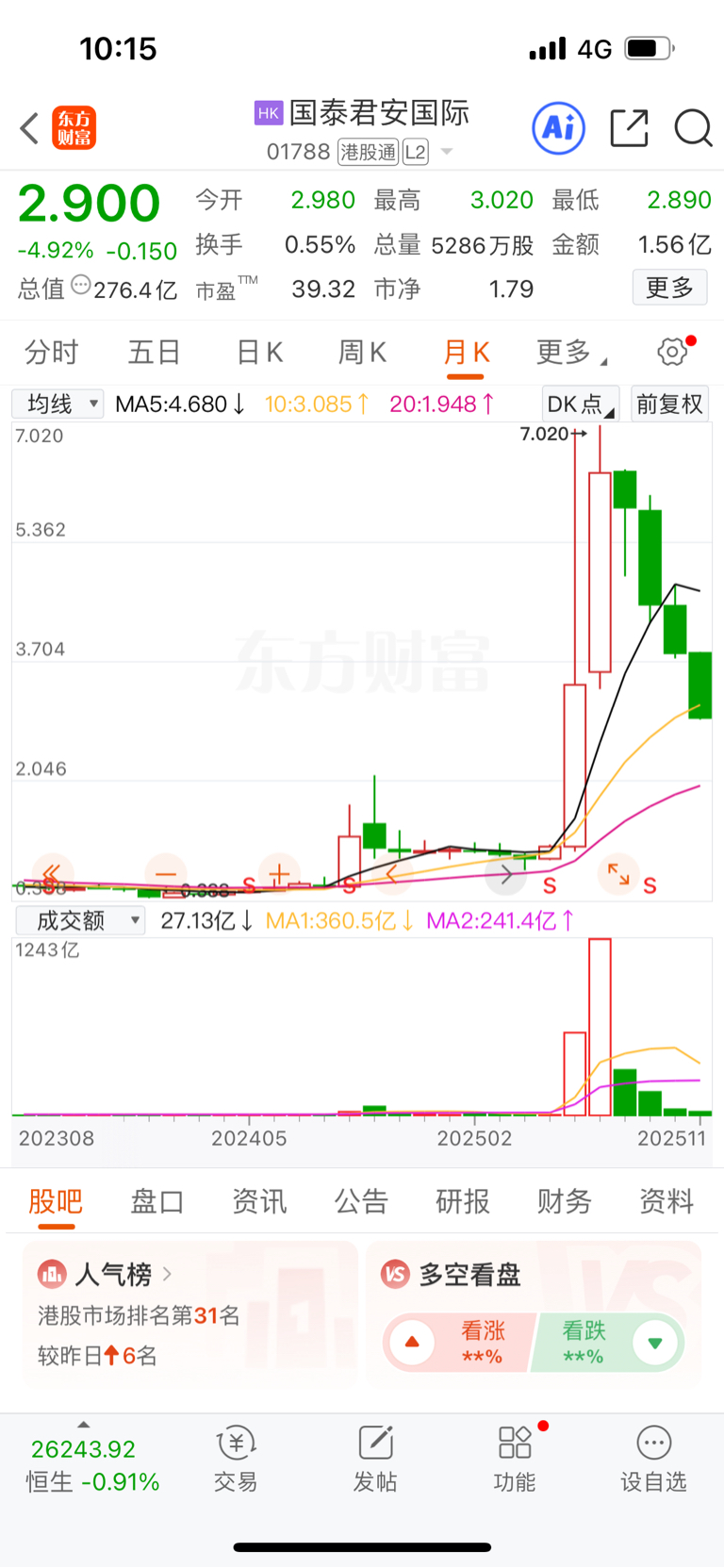$国泰君安国际(HK|01788)$ 老太太下楼梯