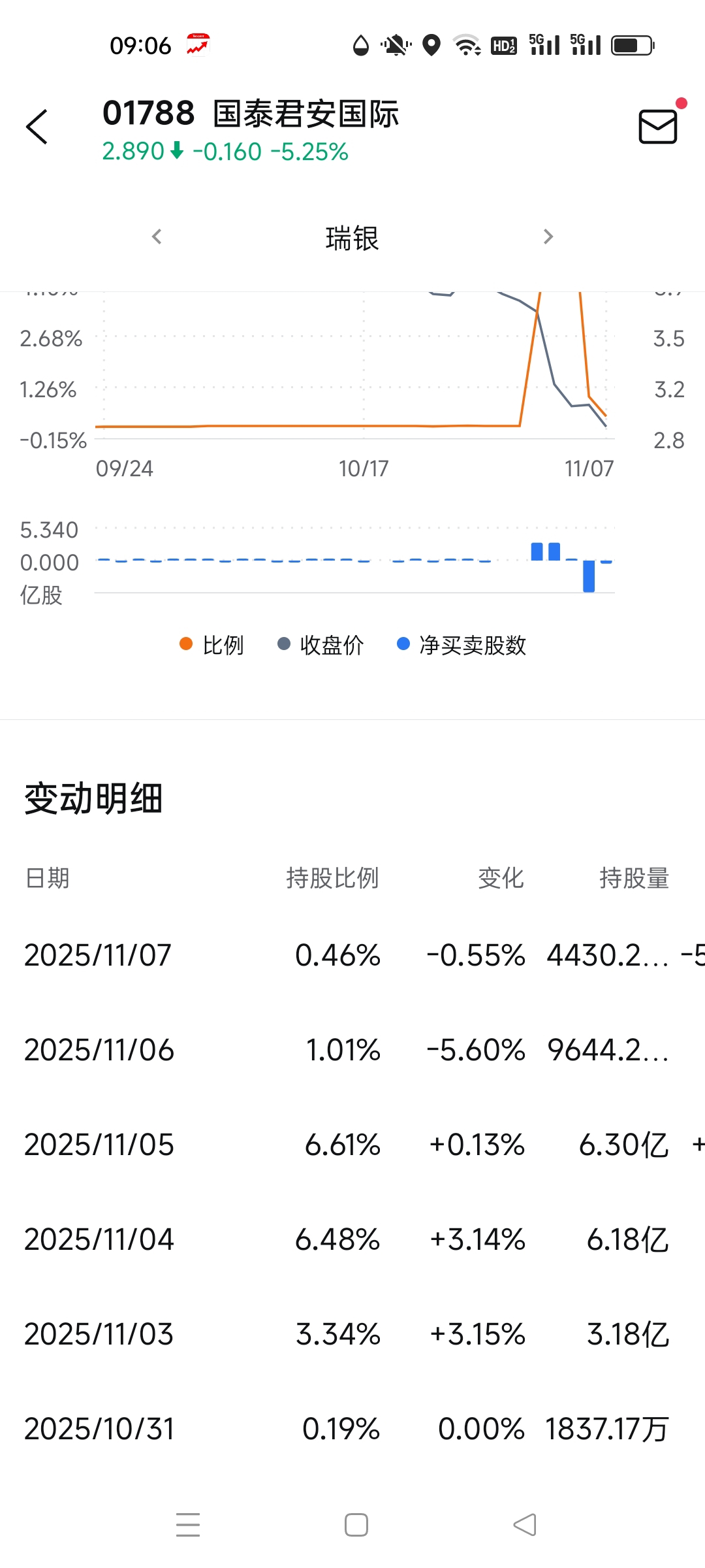 $国泰君安国际(HK|01788)$ 国泰转入瑞银的6亿多股已经卖得差不多了,下周应该会有个反弹,不知道会不会拉到3块!