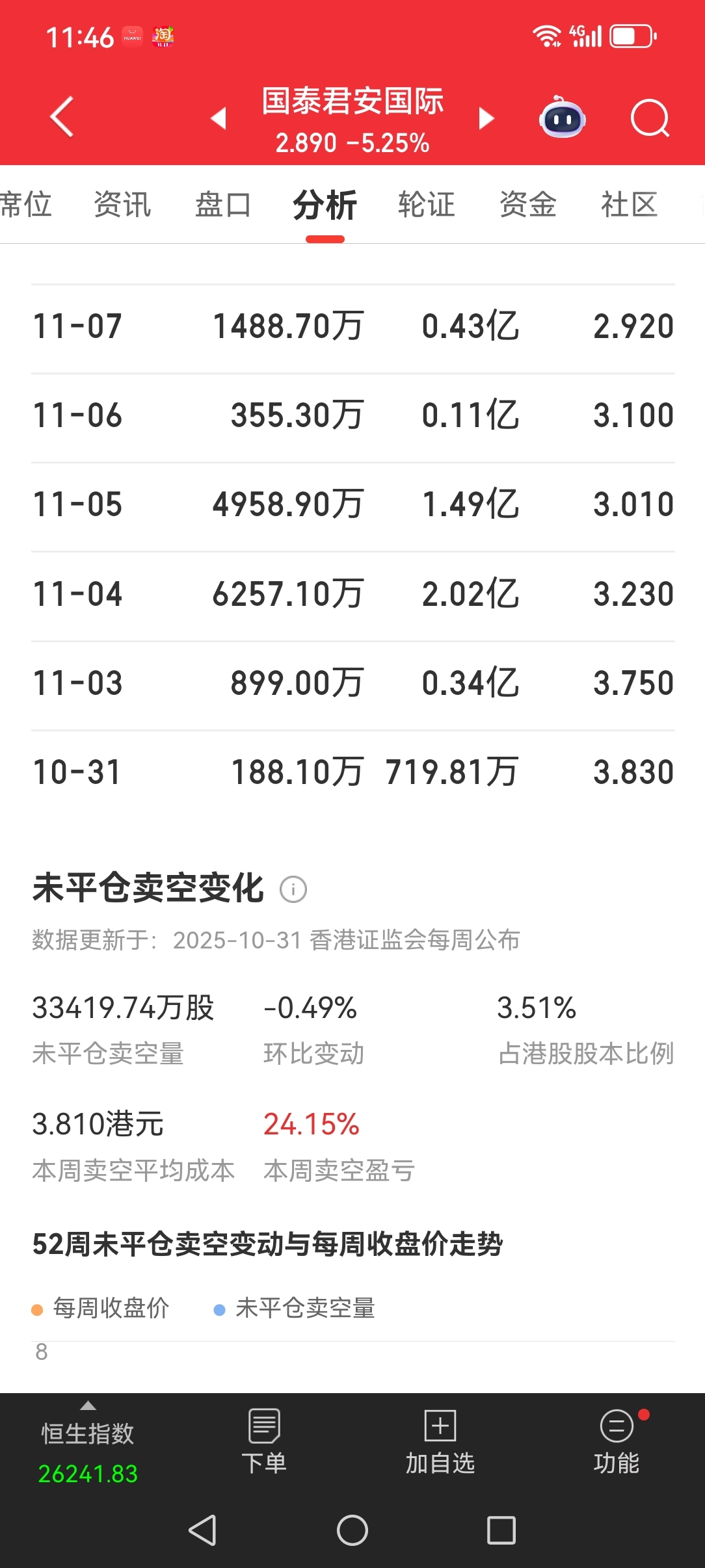 $国泰君安国际(HK|01788)$ 沽空才4.5亿左右,才卖了一点点,大家猜猜要不要到2元以下才卖完。