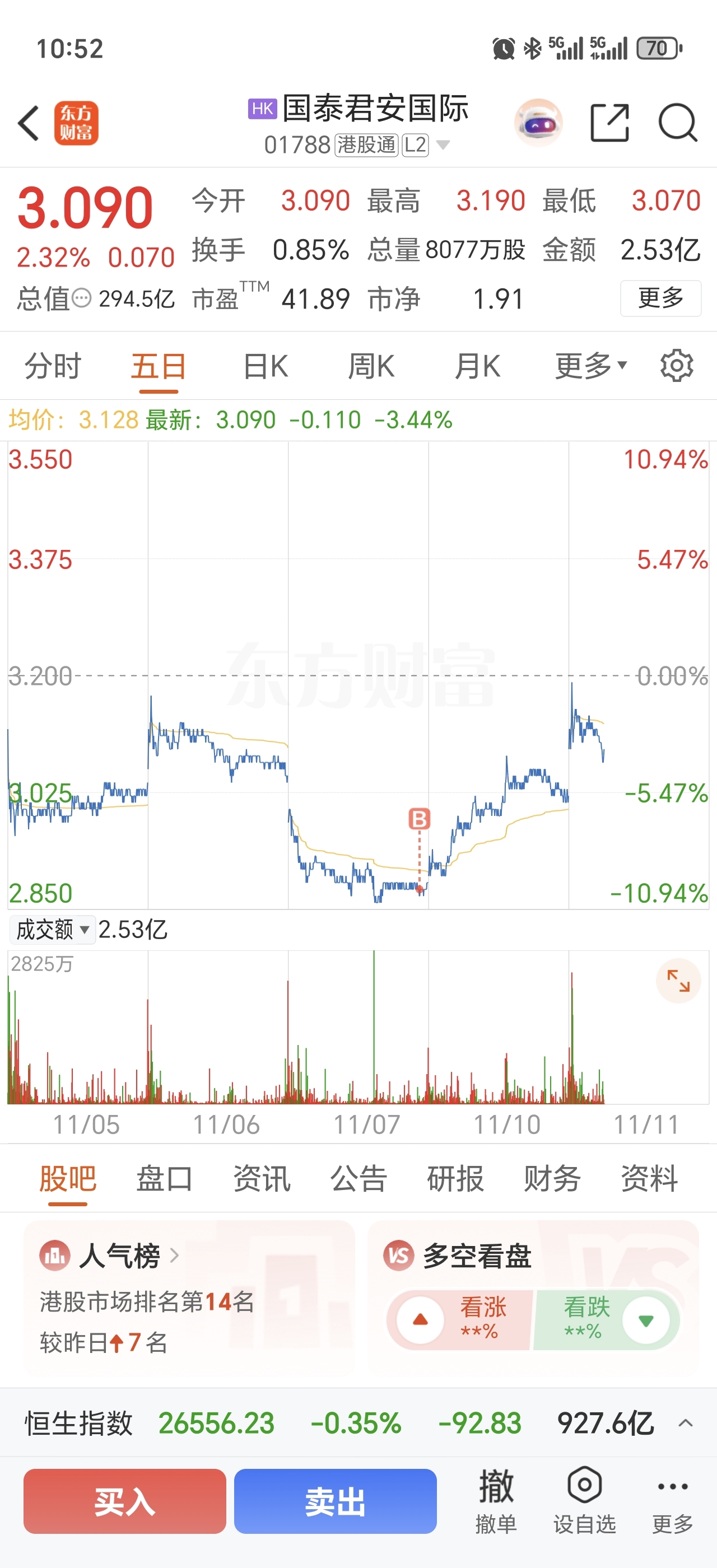$国泰君安国际(HK|01788)$ 不到3.5,坚决不卖,死等