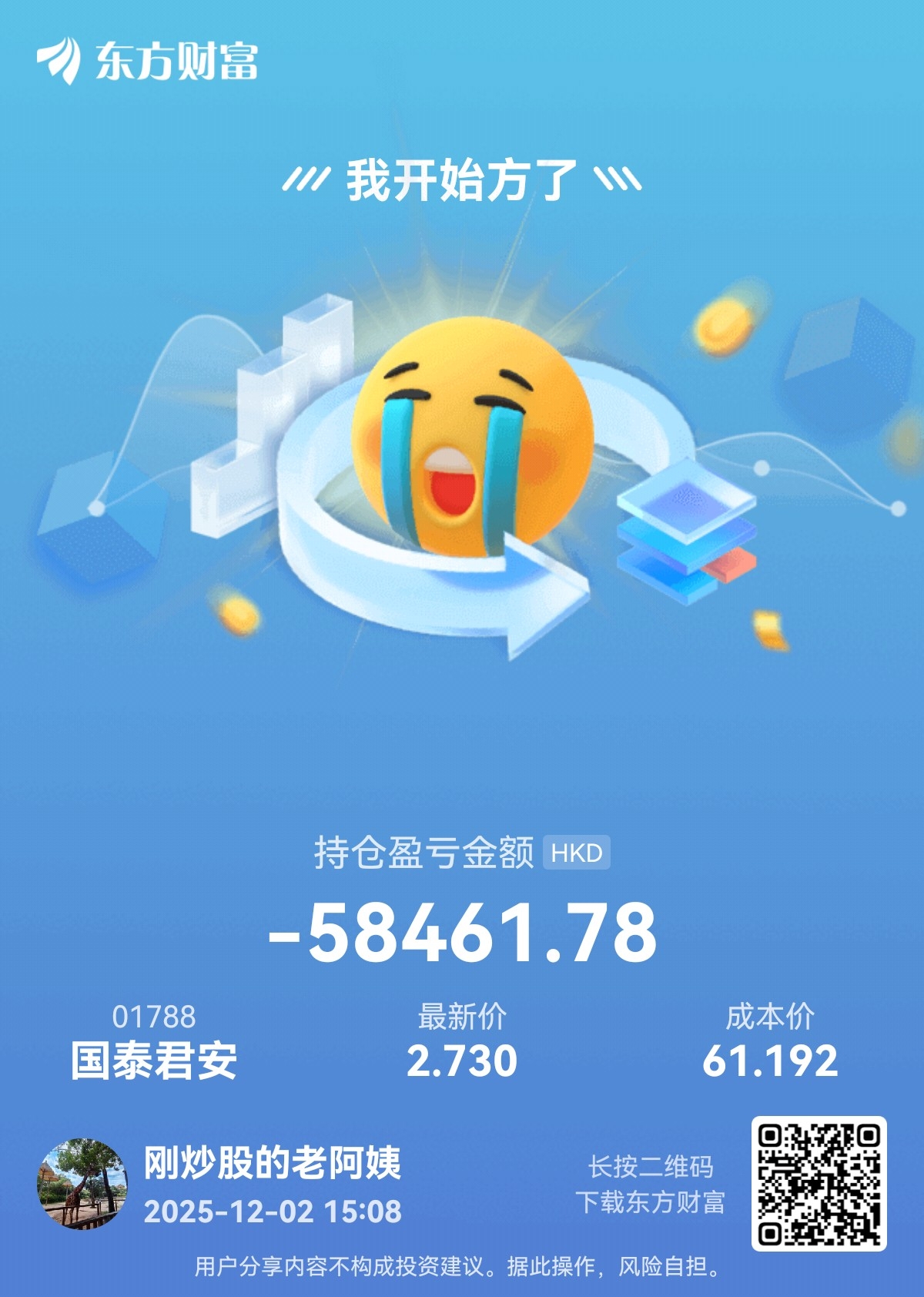 $国泰君安国际(HK|01788)$ 割了,留了1000股纪念一下。
