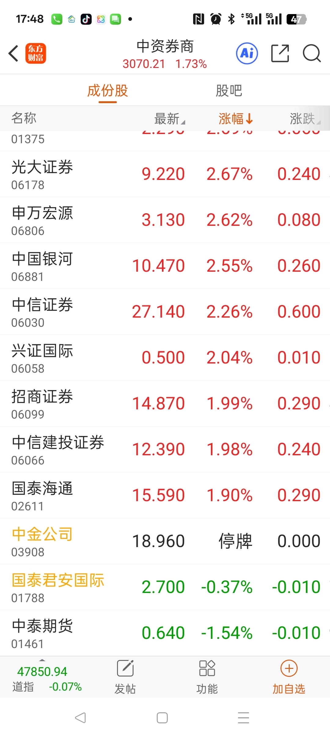 $国泰君安国际(HK|01788)$ 和仙股一个队例了