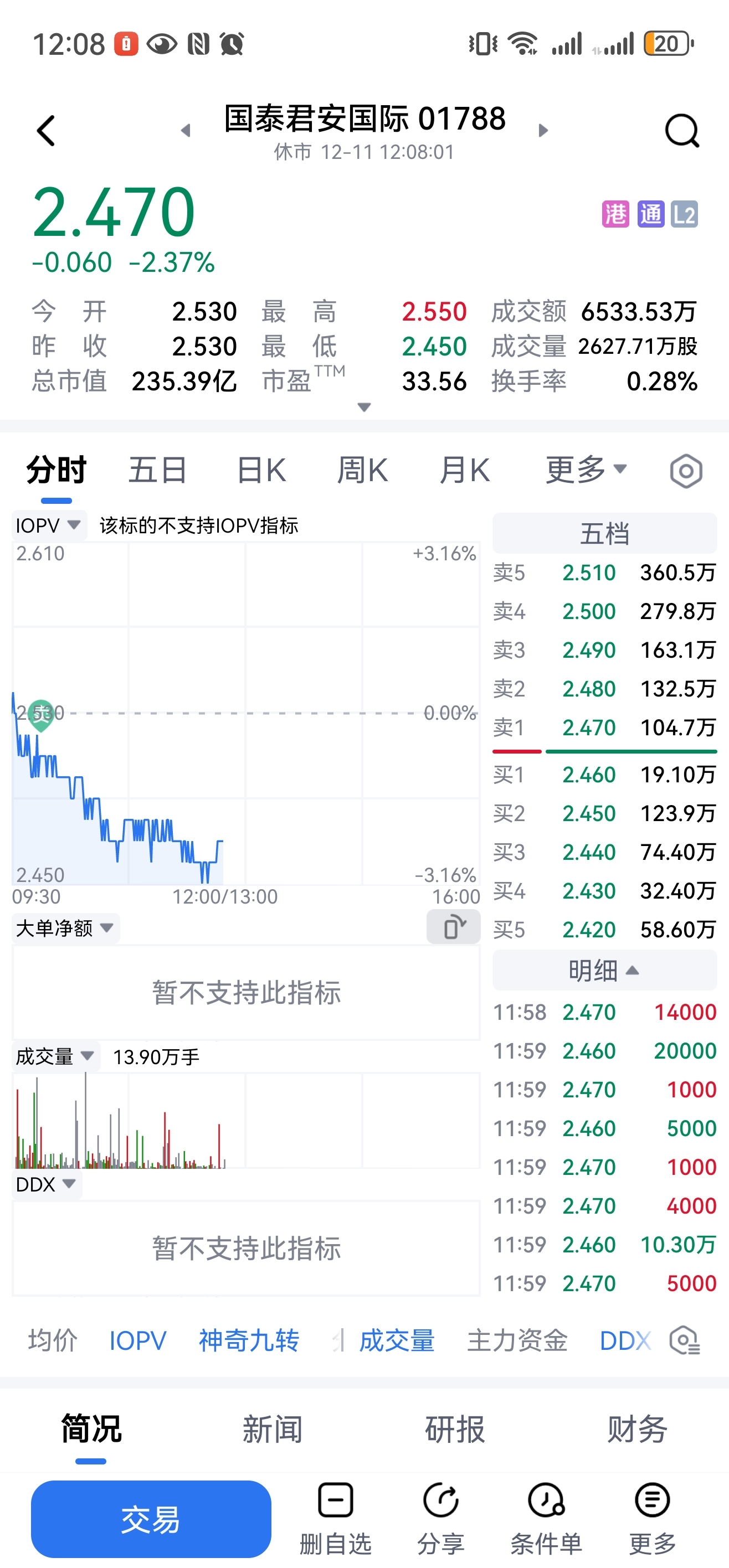 $国泰君安国际(HK|01788)$ 什么时候卖都是对的,赚26个,现在倒亏33个,走了