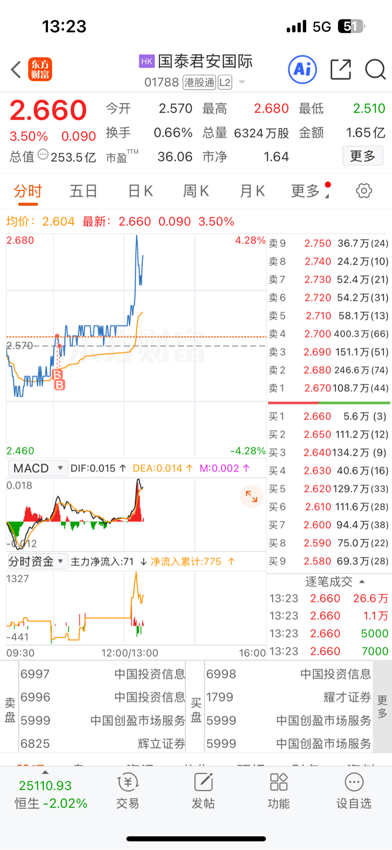 $国泰君安国际(HK|01788)$ 该我喝点西北风了