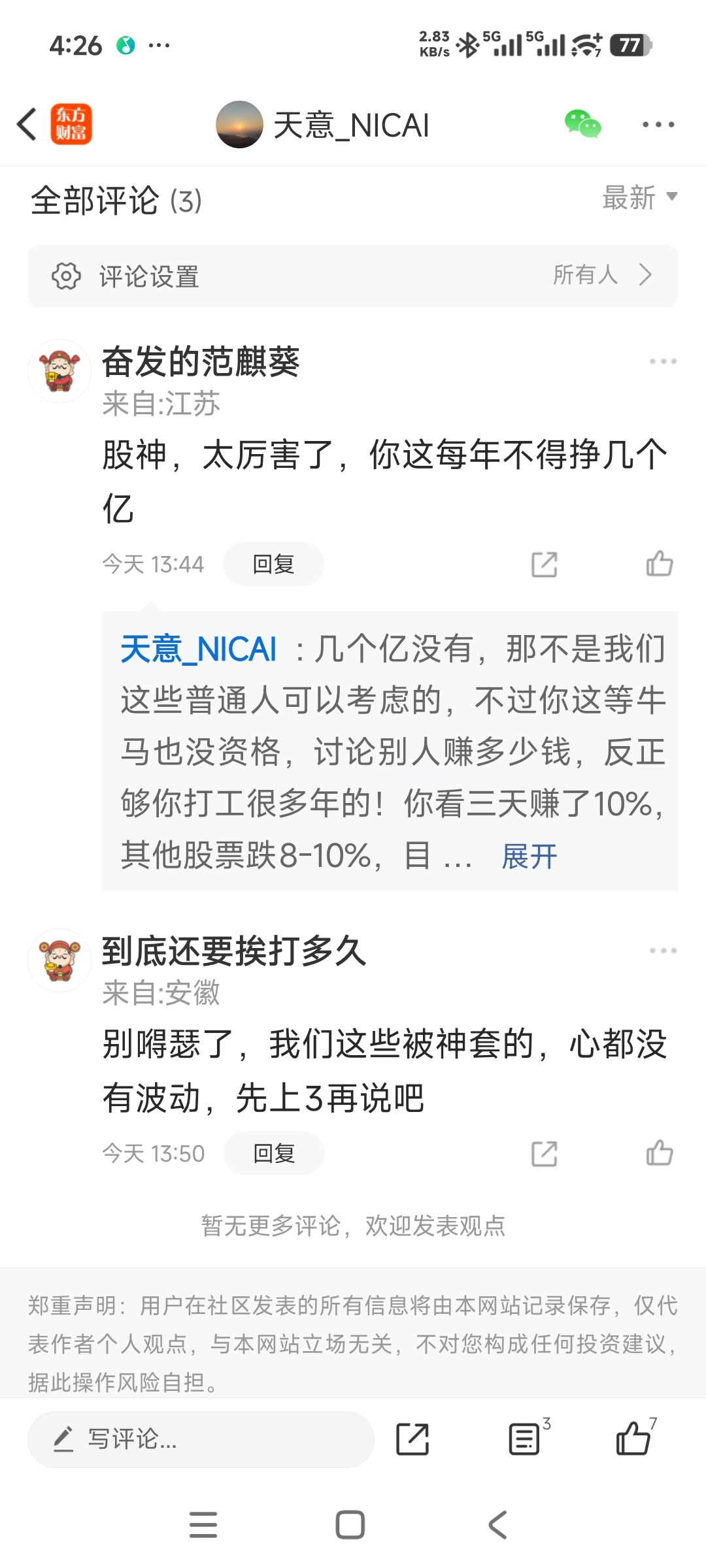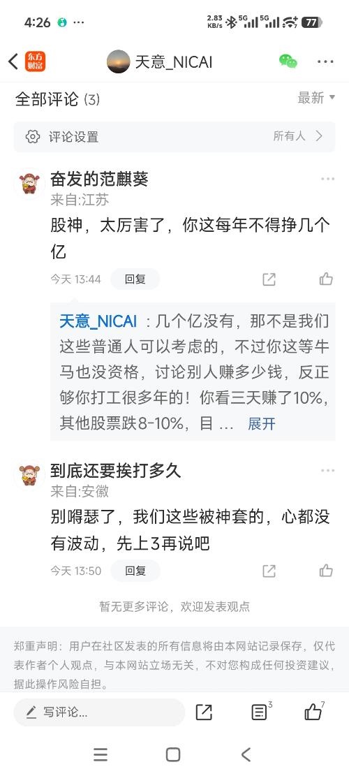 温馨提示: 1.根据《证券法》规定,禁止编造、传播虚假信息或者误导性信息,扰乱证券市场;2.用户在本社区发表的所有资料、言论等仅代表个人观点,与本网站立场无关,不对您构成任何投资建议。用户应基于自己的独立判断,自行决定证券投资并承担相应风险。《东方财富社区管理规定》