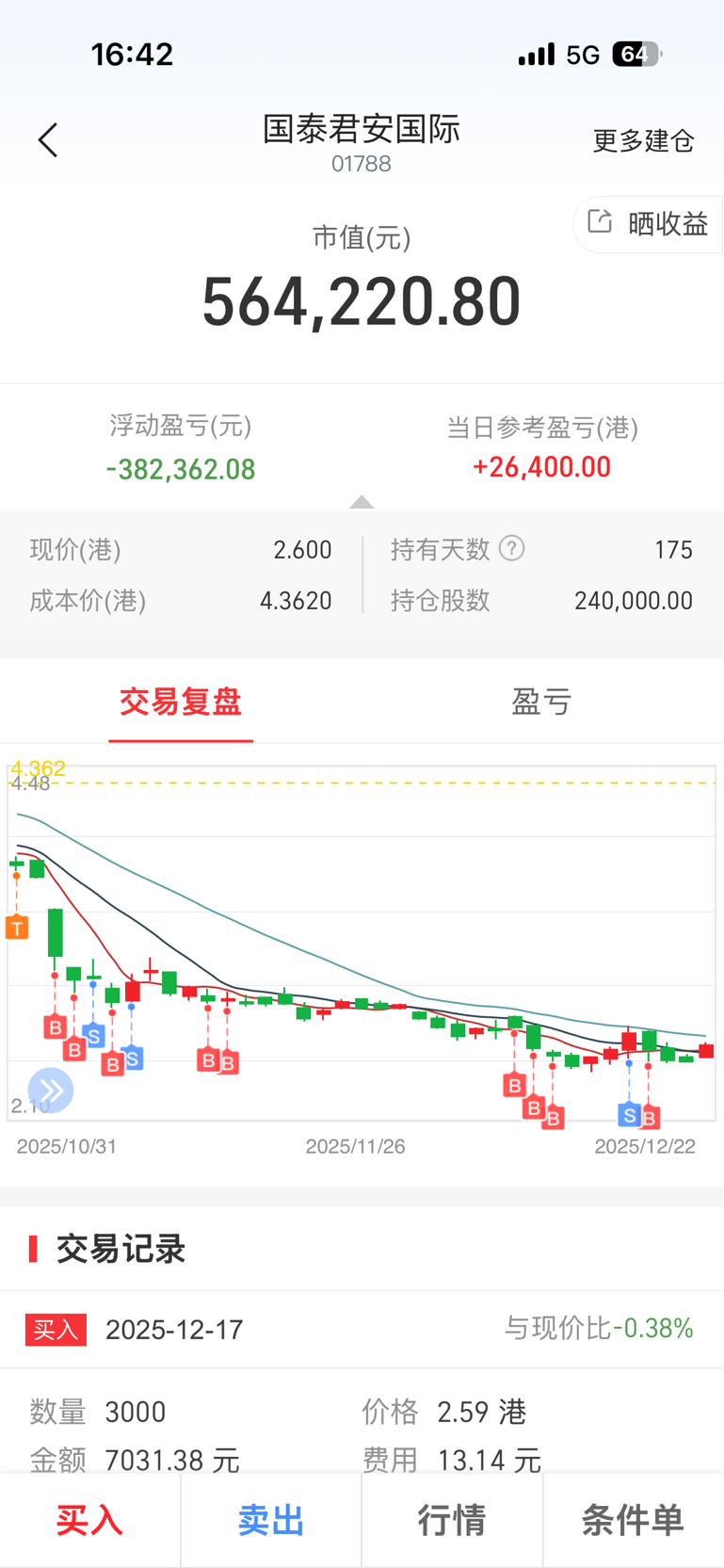 $国泰君安国际(HK|01788)$ 最初算上盈利130万 剩这点了