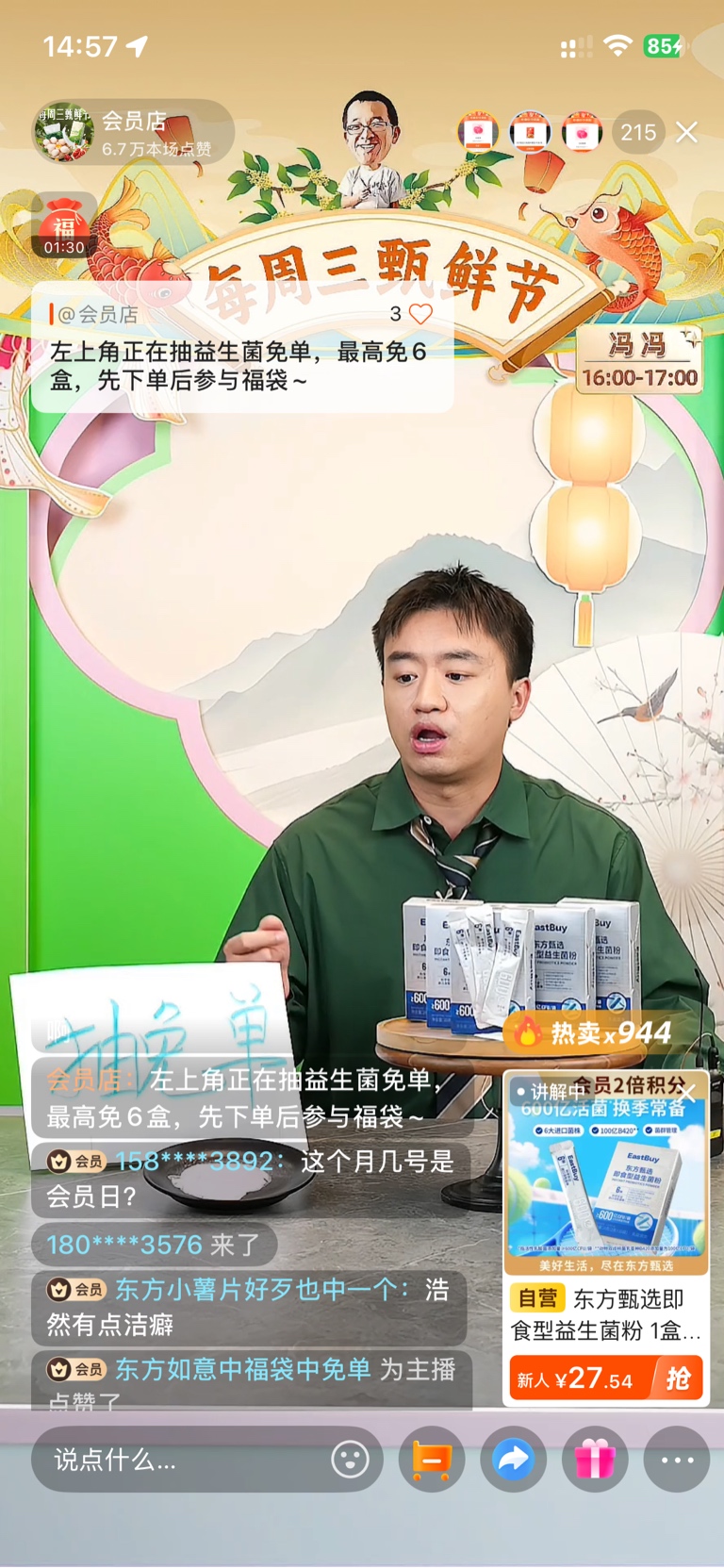 $东方甄选(HK|01797)$ 瞎选靠着抽免单来续人气,真是会员们感动