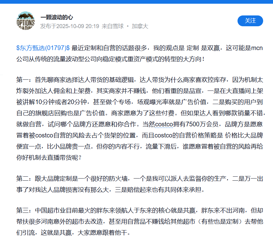 看了很久雪球猛人,果然有几把刷子,把那边闭眼入搞破防了,现在有不少质疑自营品前途了。