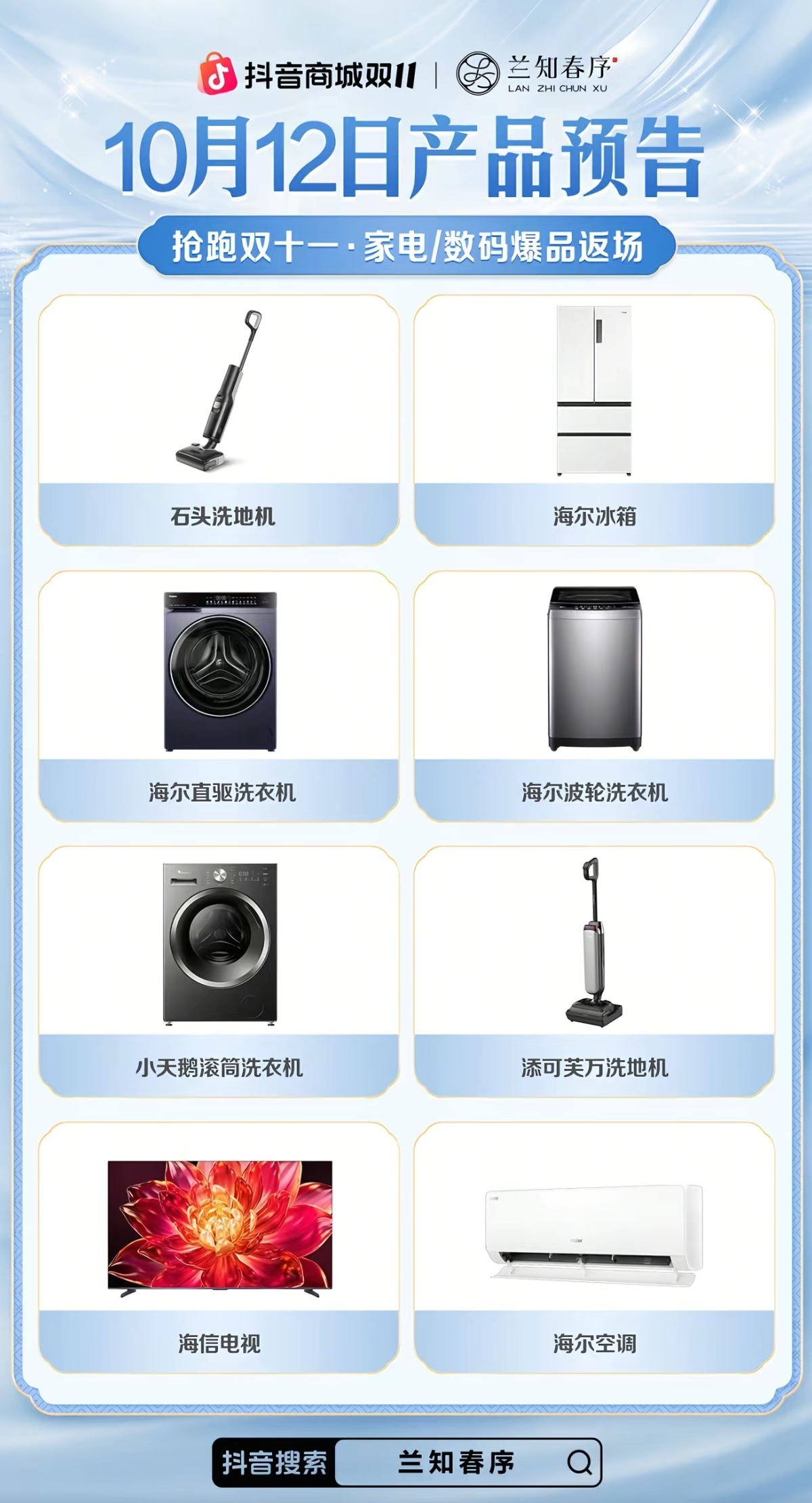 不懂管理的再次打造了两个头部直播间,今天下午4:00兰知春序家电数码家居爆品返场