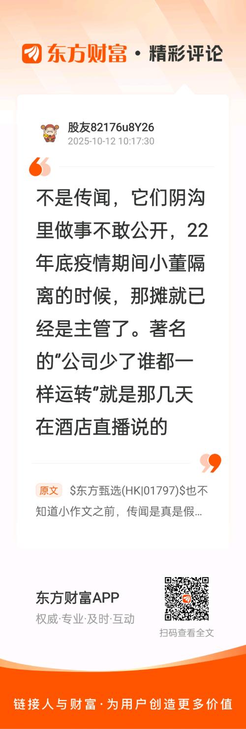 $东方甄选(HK|01797)$  也不知道小作文之前,传闻是真是假,日月当了主播主管,让一个中部主播管理超头部主播?