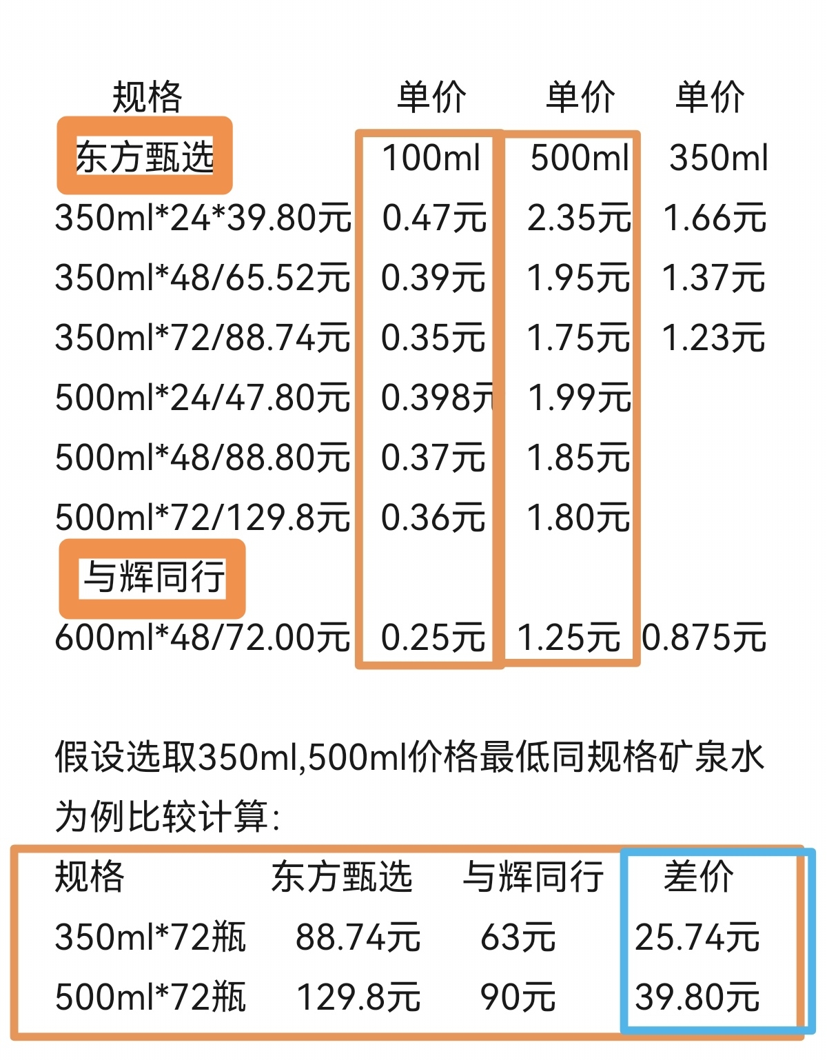 $东方甄选(HK|01797)$ 与辉同行泉阳泉矿泉水因为是官方旗舰店,所以标准是GB/T20349,有国家地理GI认证,高于东方甄选的代工矿泉水标准GB8537,至于价格换算成同规格后可以初步对比一下