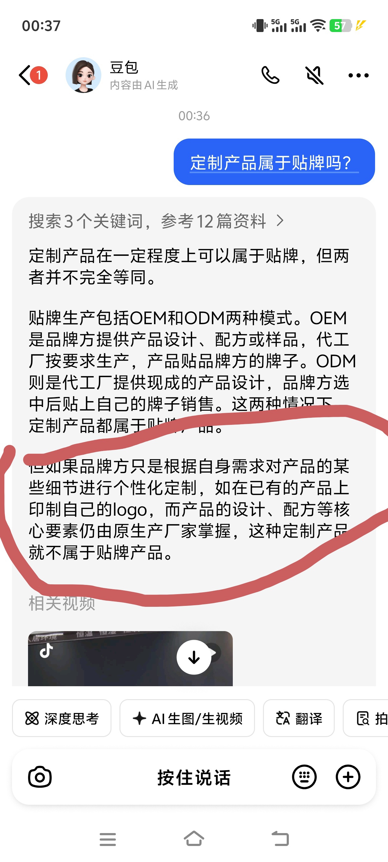 豆包说与辉同行的定制卤牛肉不属于贴牌