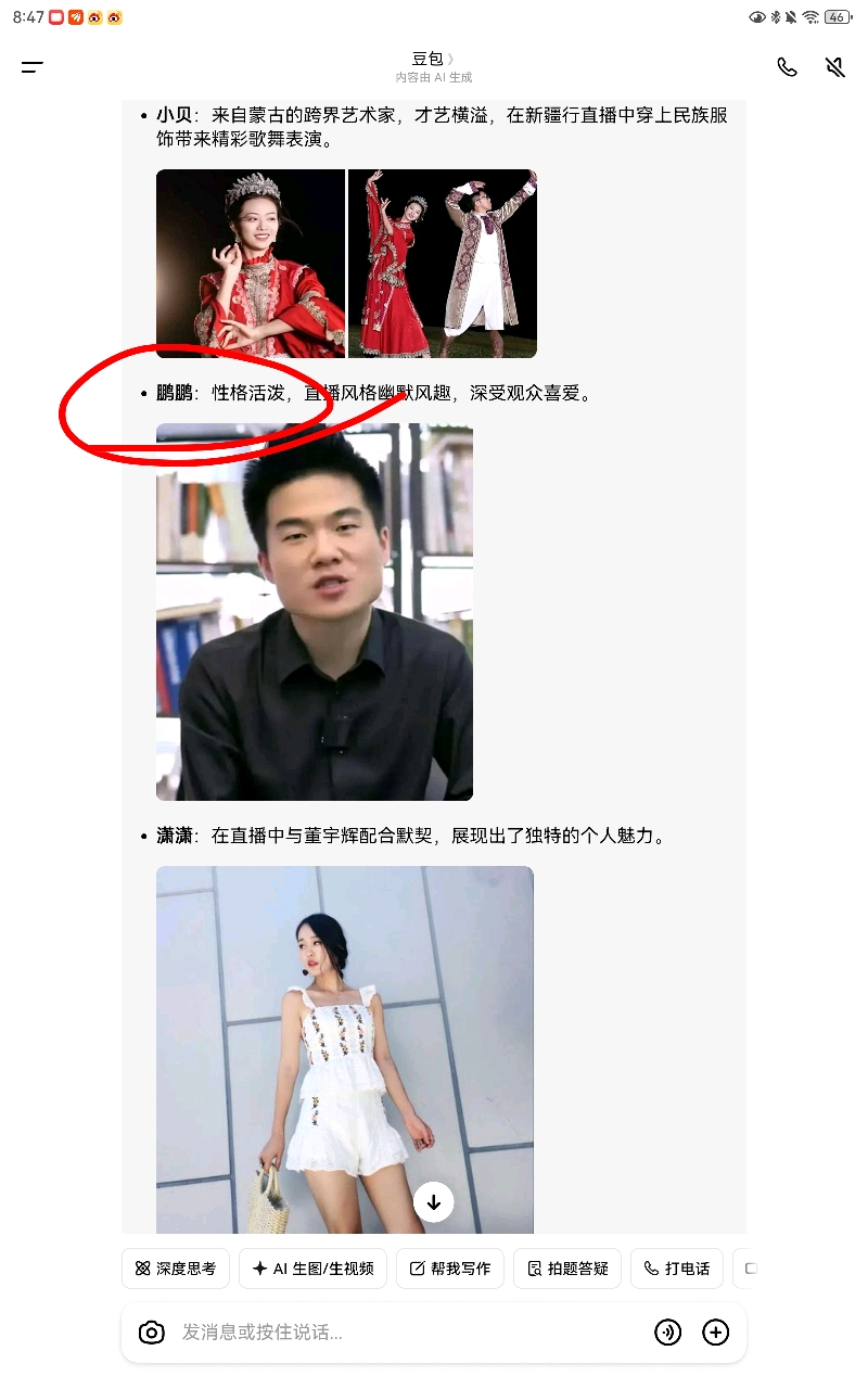 这豆包这么不靠谱了,鹏鹏和董宇辉都能搞错