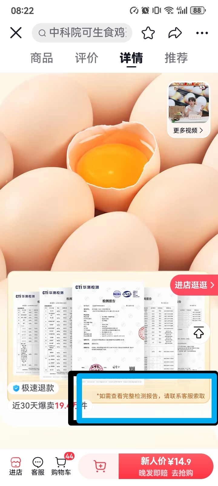$东方甄选(HK|01797)$ 同行的检测报告就贴在详情页,不用放大都能看清,某选的还要专门去问客服要,难道是详情页的空小,放不下?听了一会叫卖,最多的就是宣传安全,然后就是让赶紧下单,结果最大的安全这个卖点的检测报告不放详情页,想看还要单独去问客服要,这操作,不懂