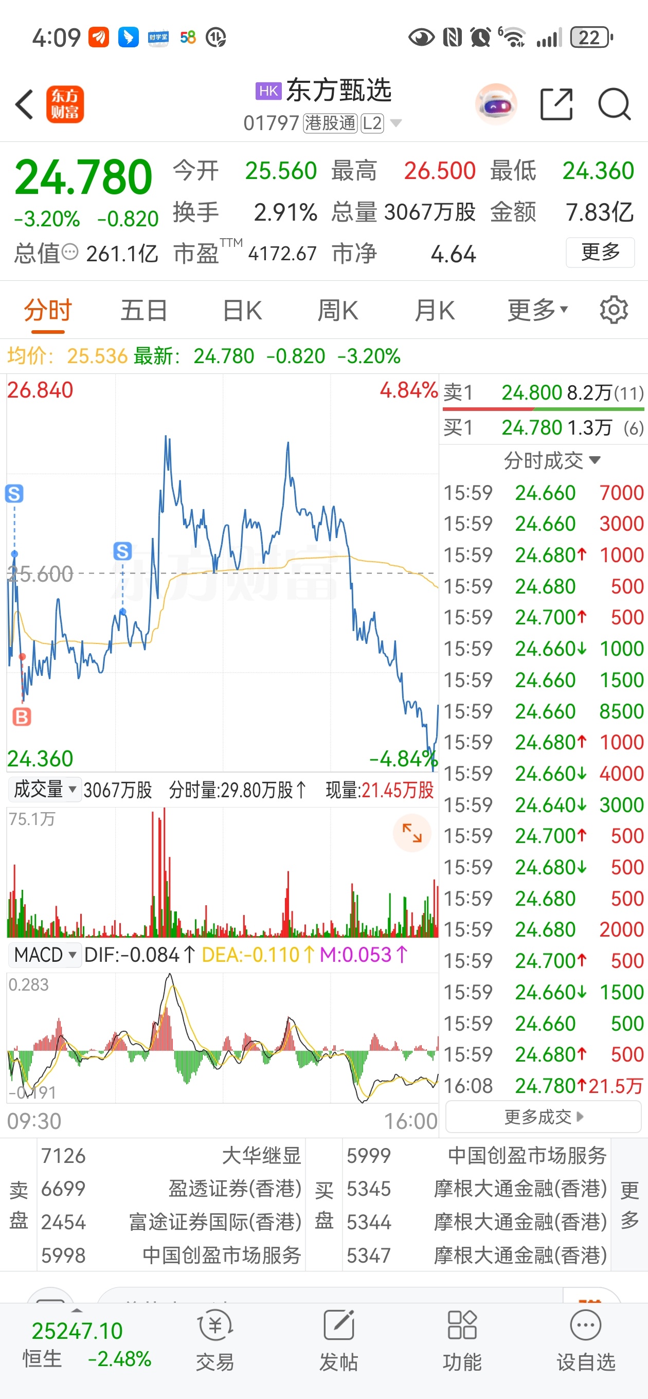 $东方甄选(HK|01797)$ 昨天进来赚了点,今早还以为卖飞了呢