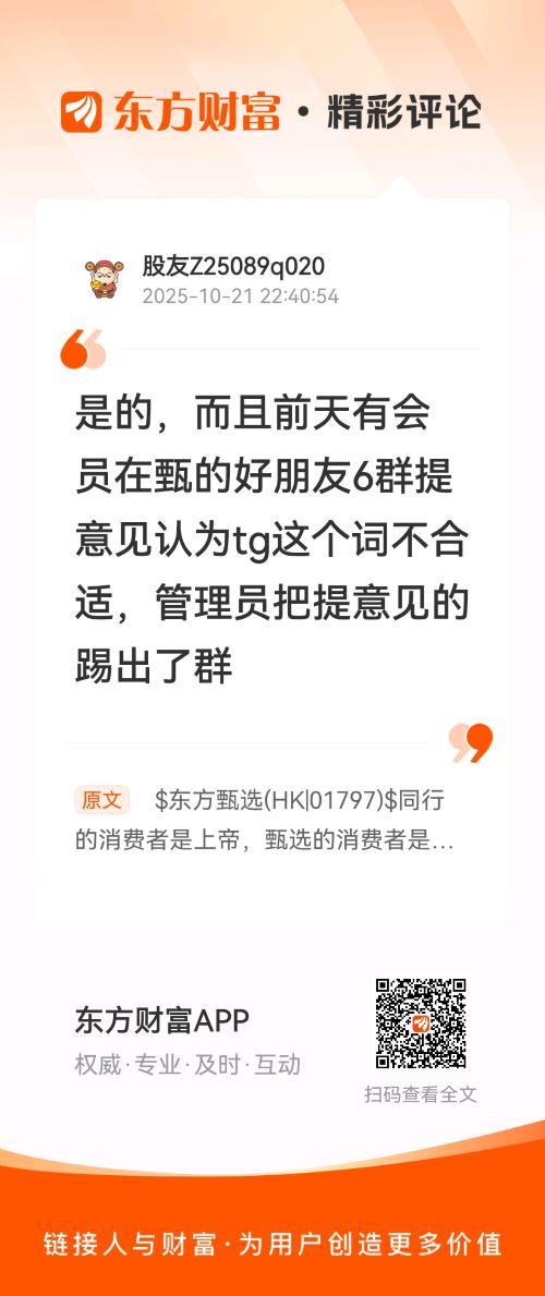 //@股友Z25089q020 :是的,而且前天有会员在甄的好朋友6群提意见认为tg这个词不合适,管理员把提意见的踢出了群