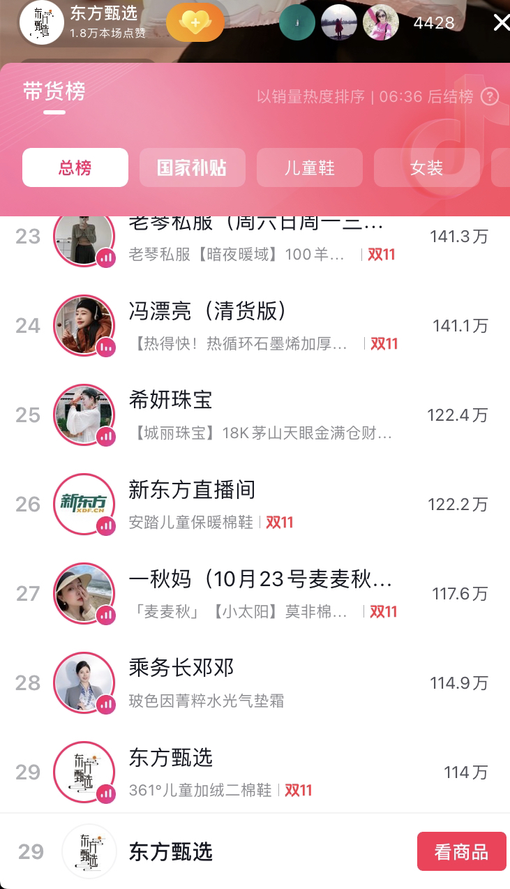 $东方甄选(HK|01797)$ 今天肯定涨了吧,上前30名了大大的进步,不涨说不过去了吧!